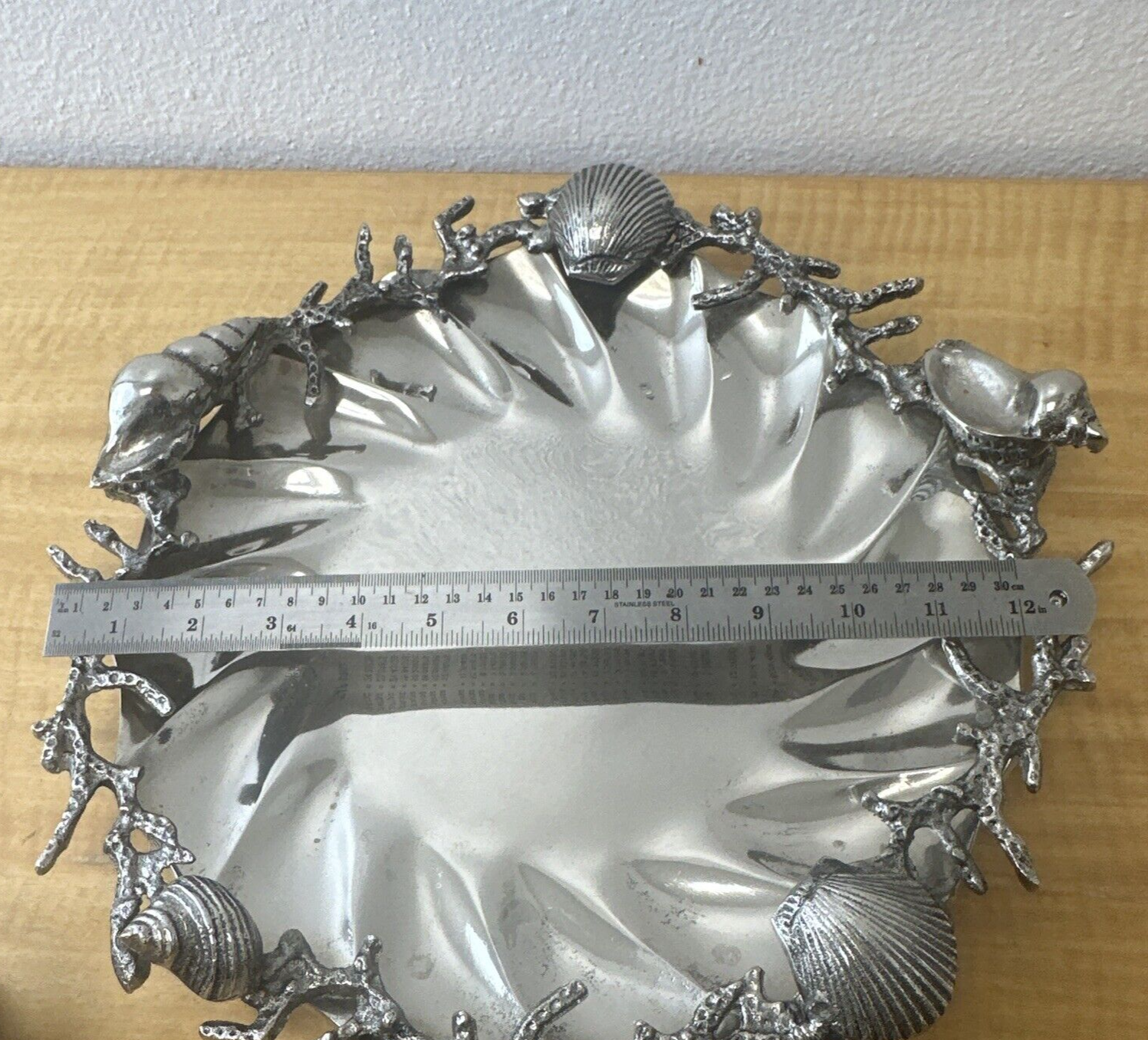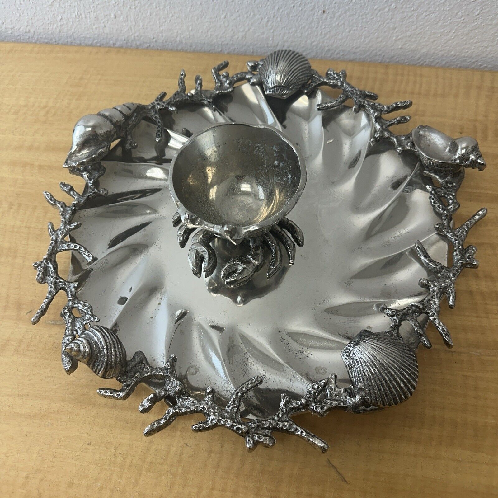 STAR HOME seashells chip and dip metal round tray w/ deep Crab Dipping bowl