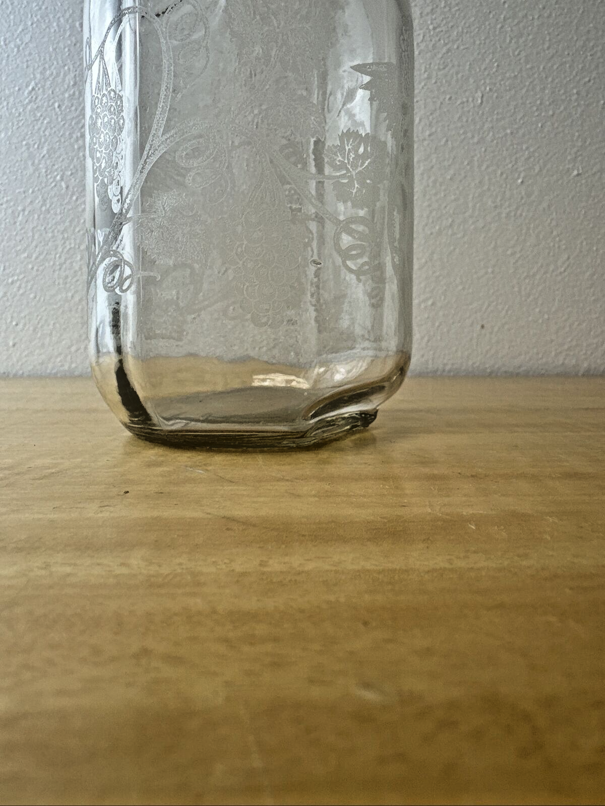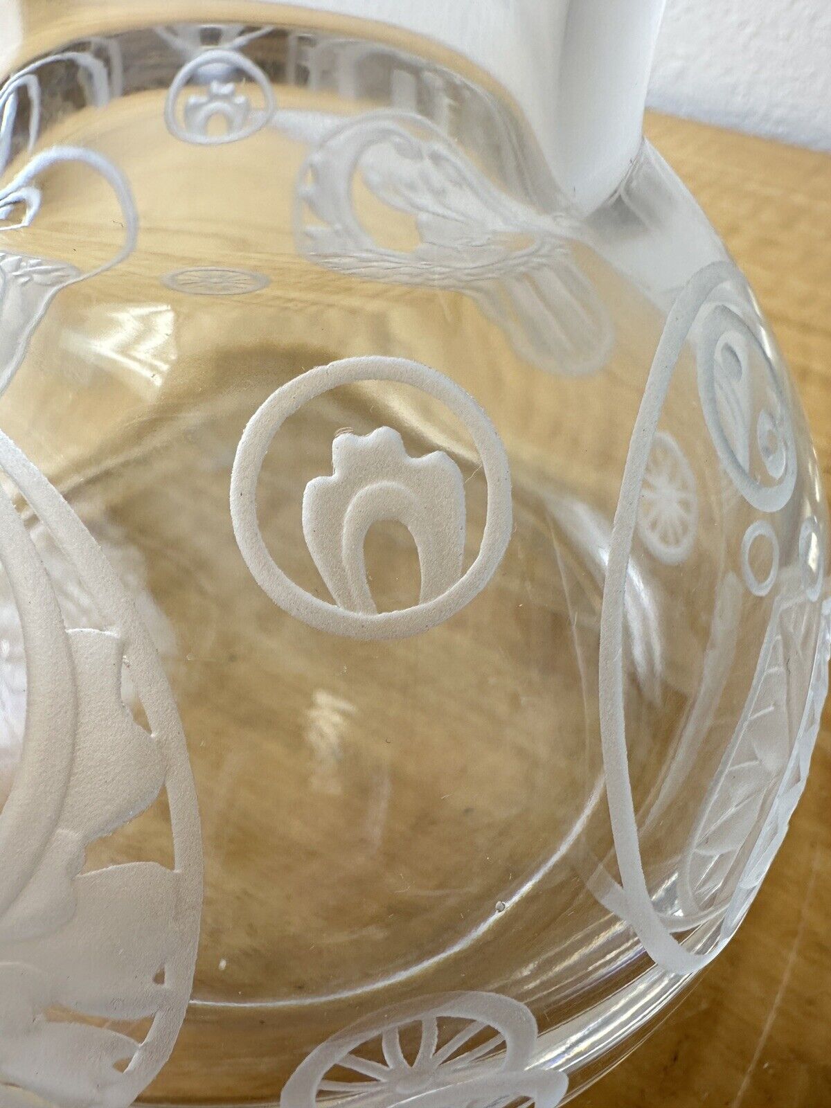Etched Glass Wine Carafe. Paul Masso Vine Yards1989. Etched Norman Kosarin