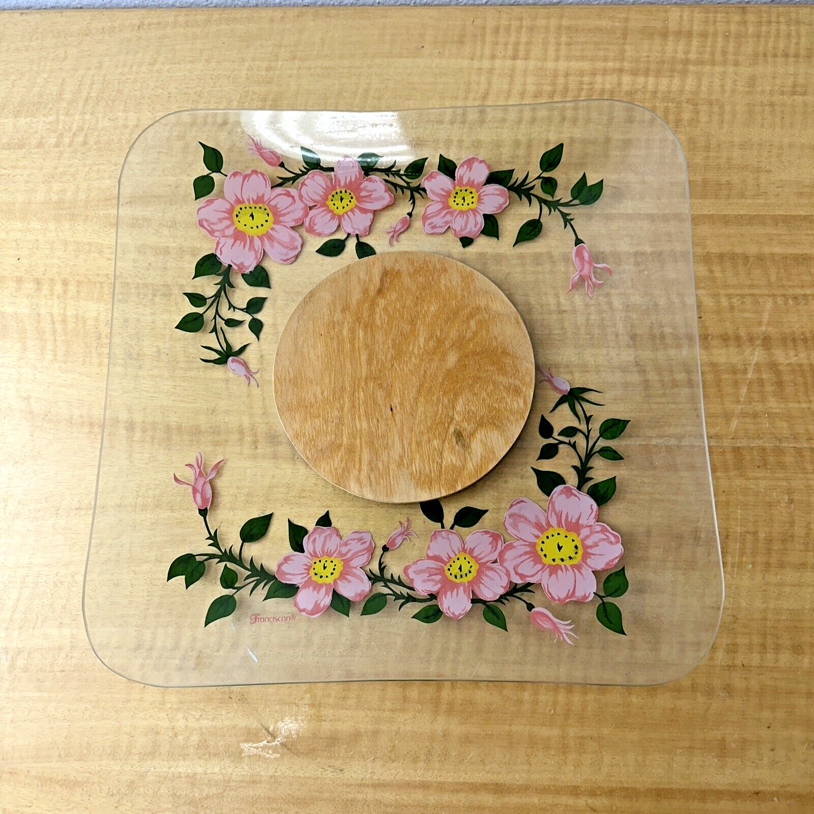Franciscan Desert Rose Square Glass Platter Tray Reverse Painted 12.5”