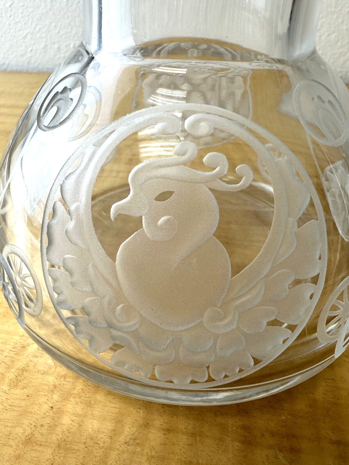 ELEGANT TIFFANY VINTAGE CRYSTAL DECANTER/VASE ARTIST SIGNED ETCHED DESIGN