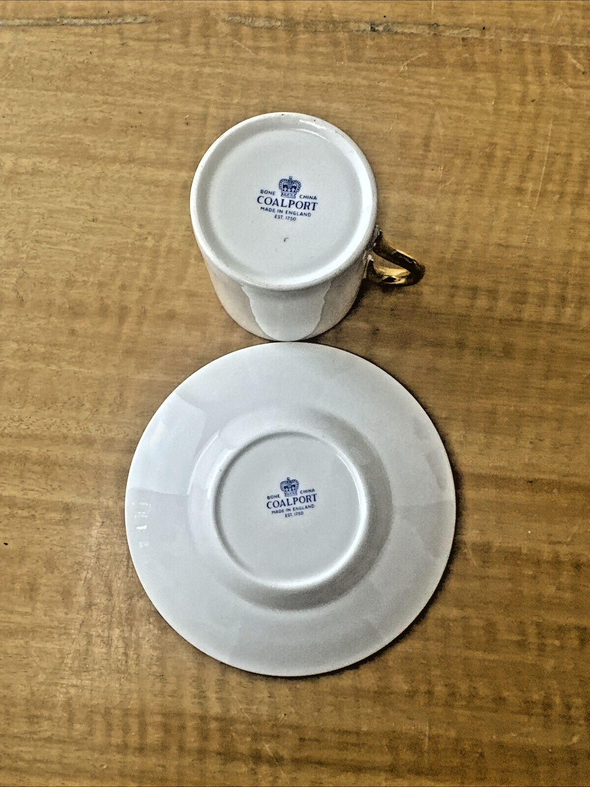 Coalport White Gold Handle Espresso Demitasse Cup Saucer Bone China England