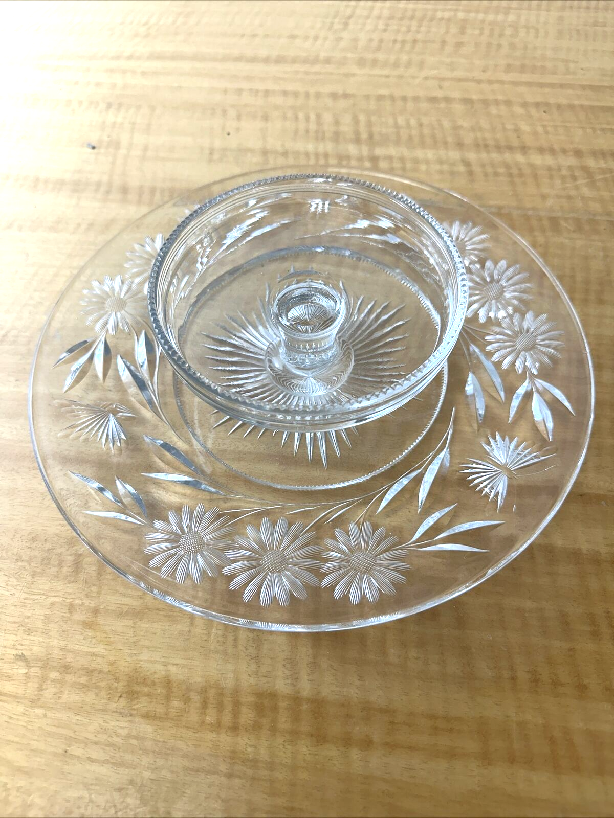 American Brilliant Cut Glass 10" Chip & Dip Tray, Gravic Style, c. 1900