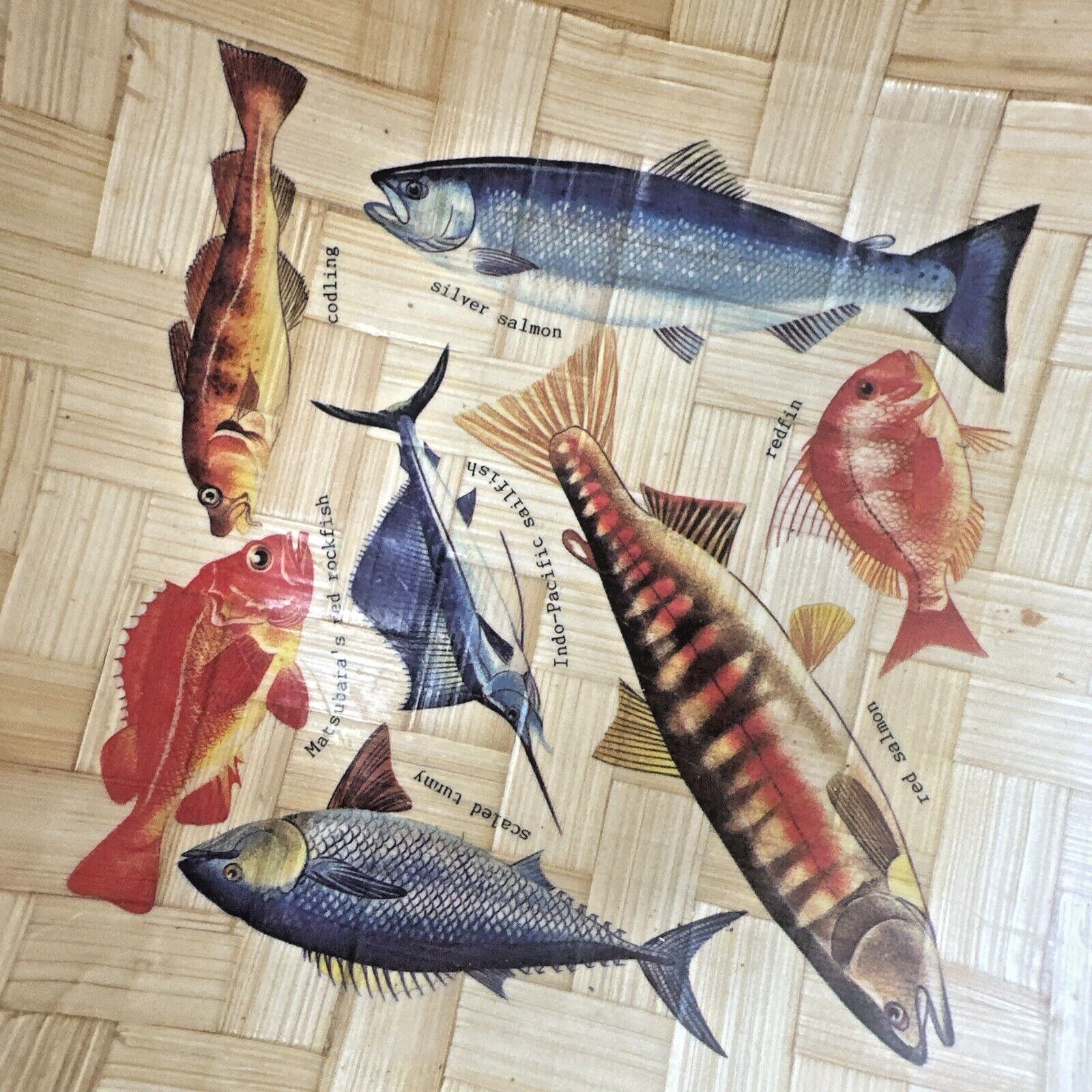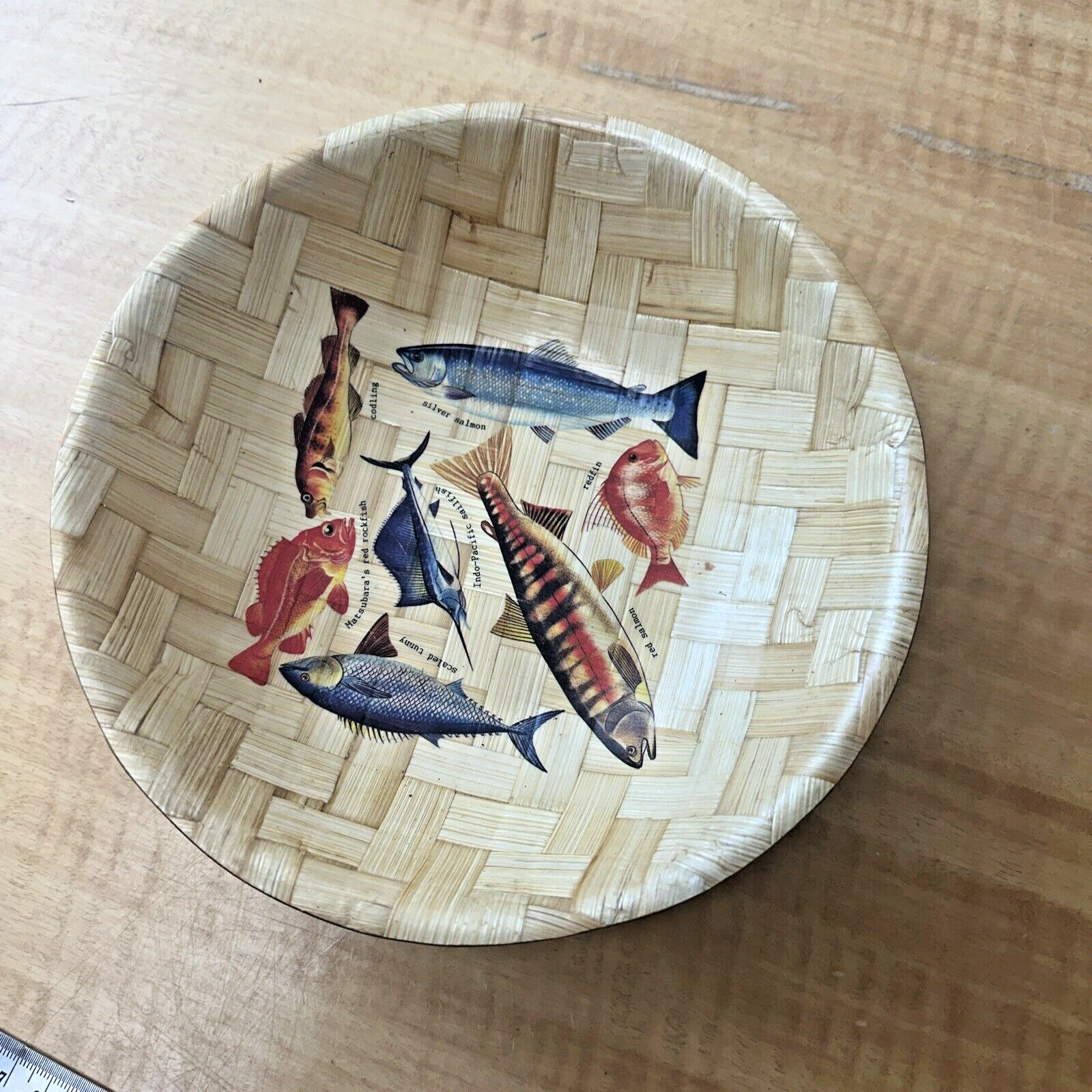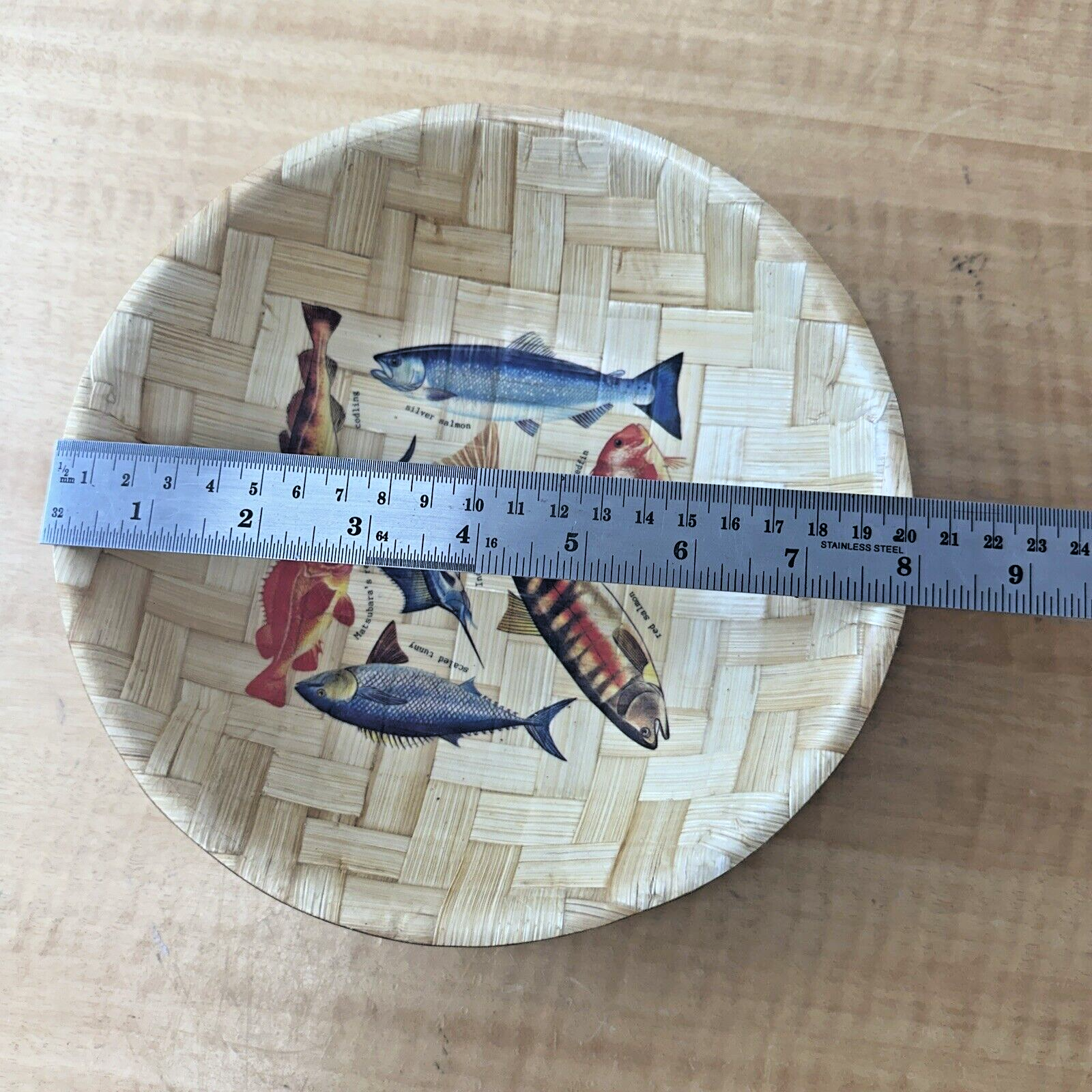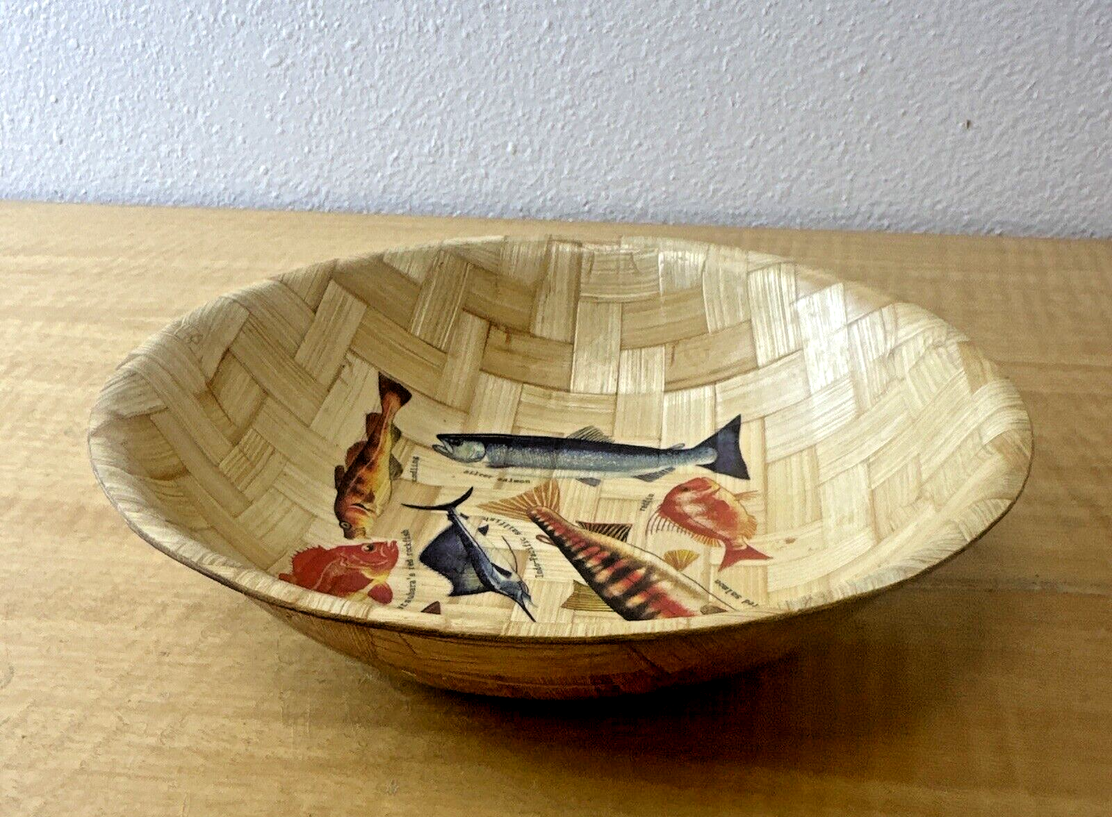 Vintage Bamboo Wicker Braided Bowl with Fish Species