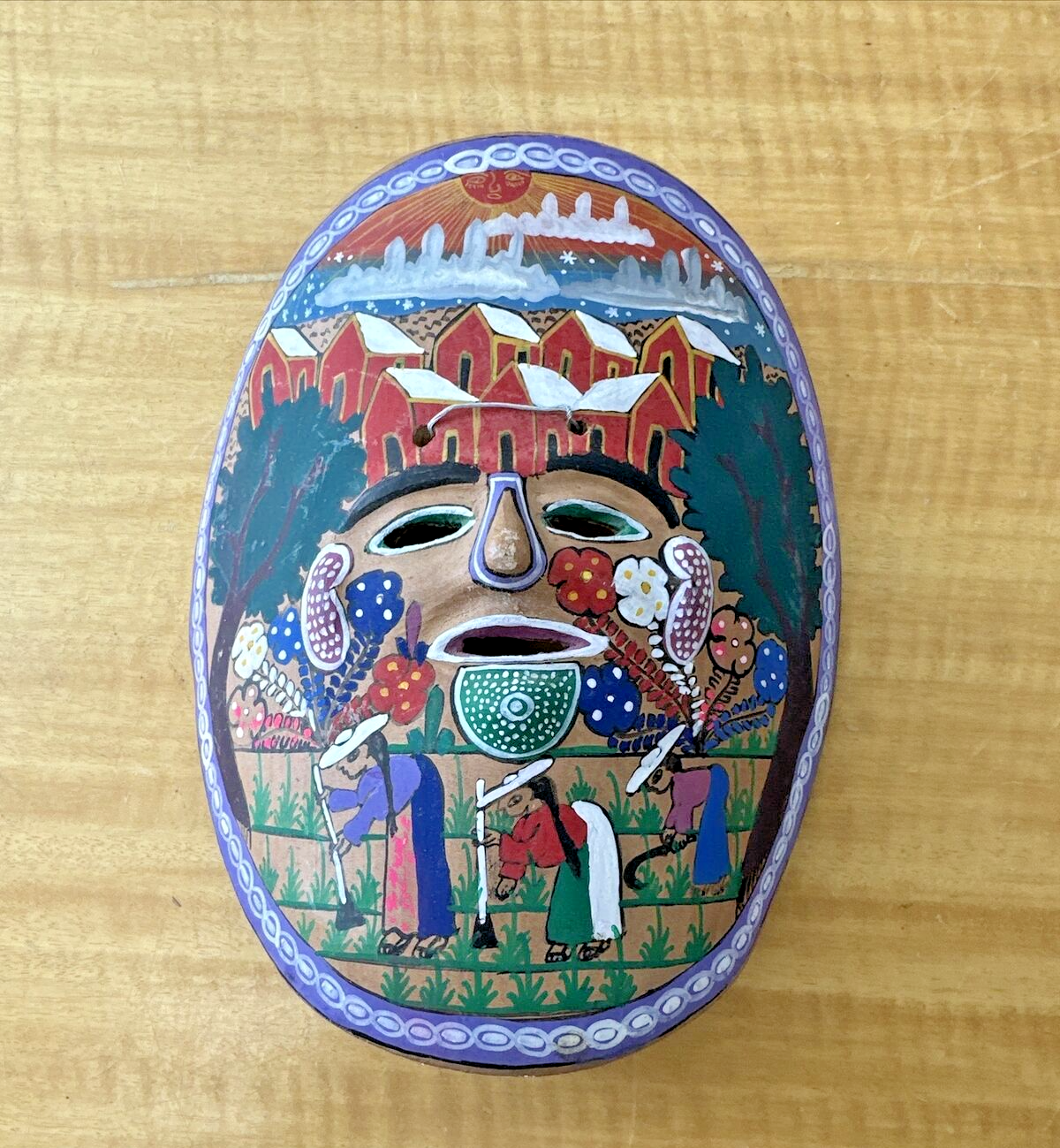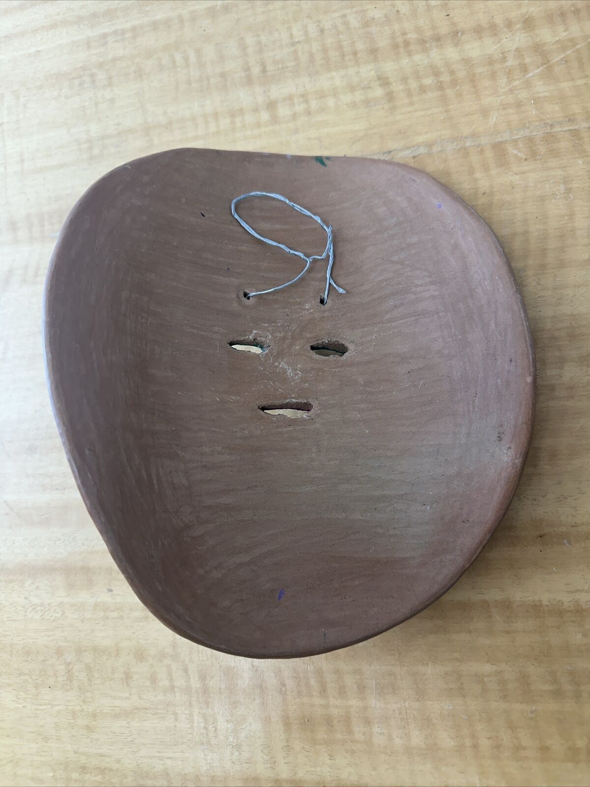 Clay mask decorative only handmade in Mexico accent, vintage clay hand painted