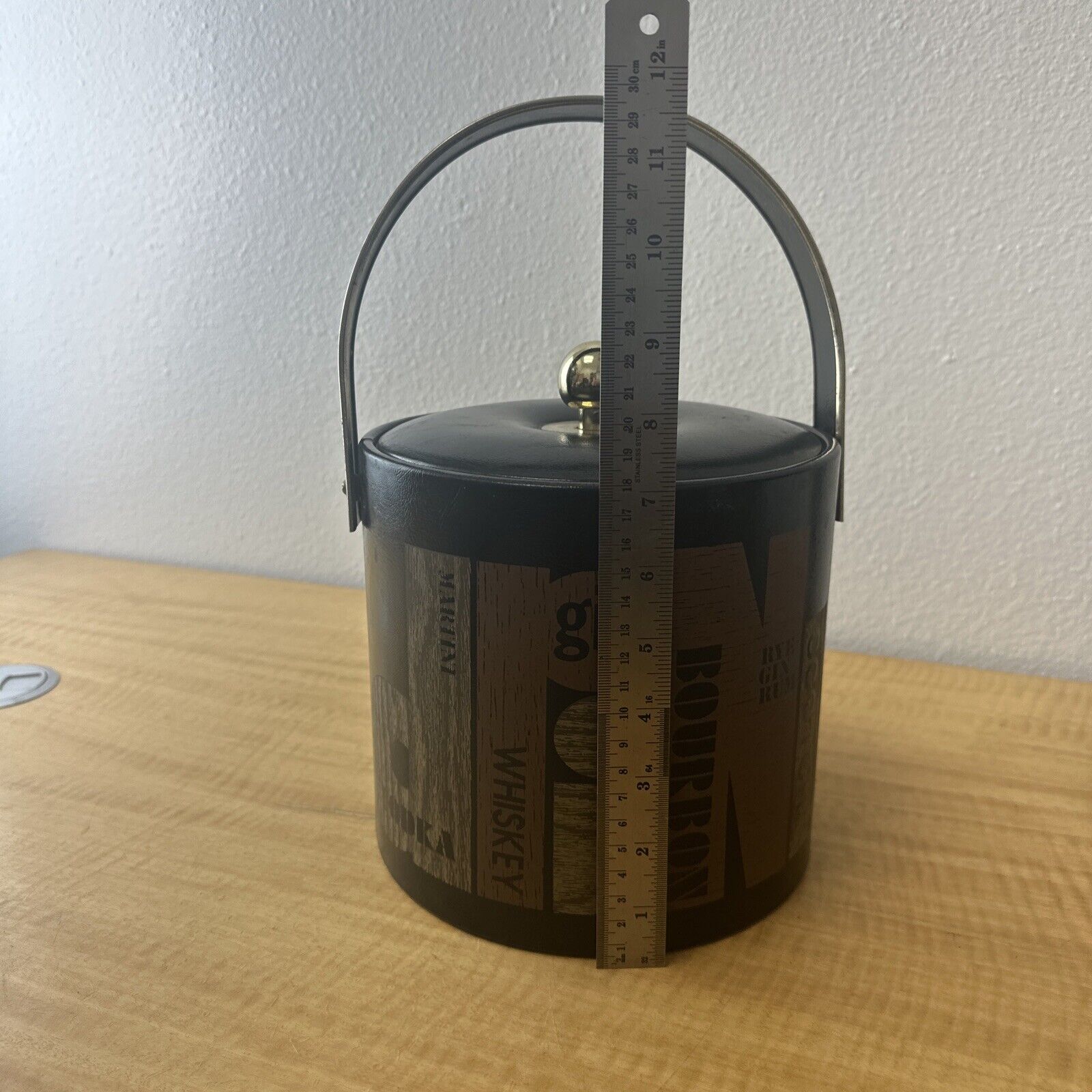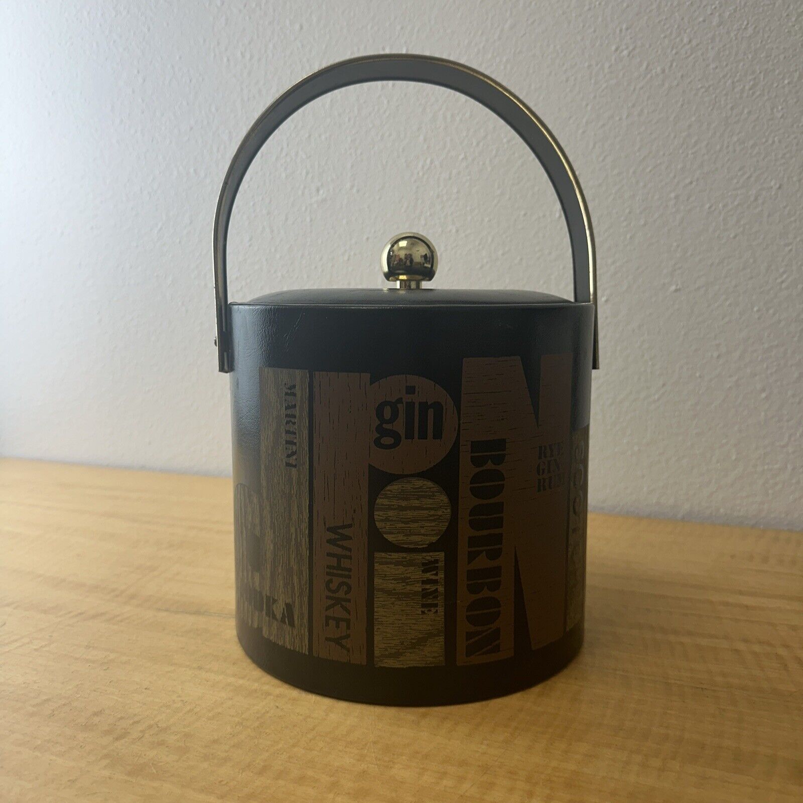Vintage MCM Couroc of Monterey ice bucket: Gin, Whiskey, Wine, Bourbon Image