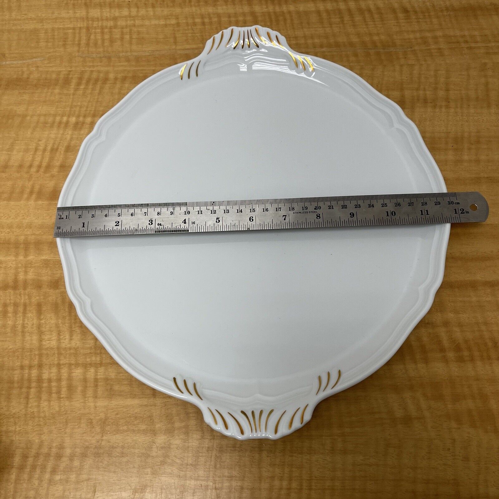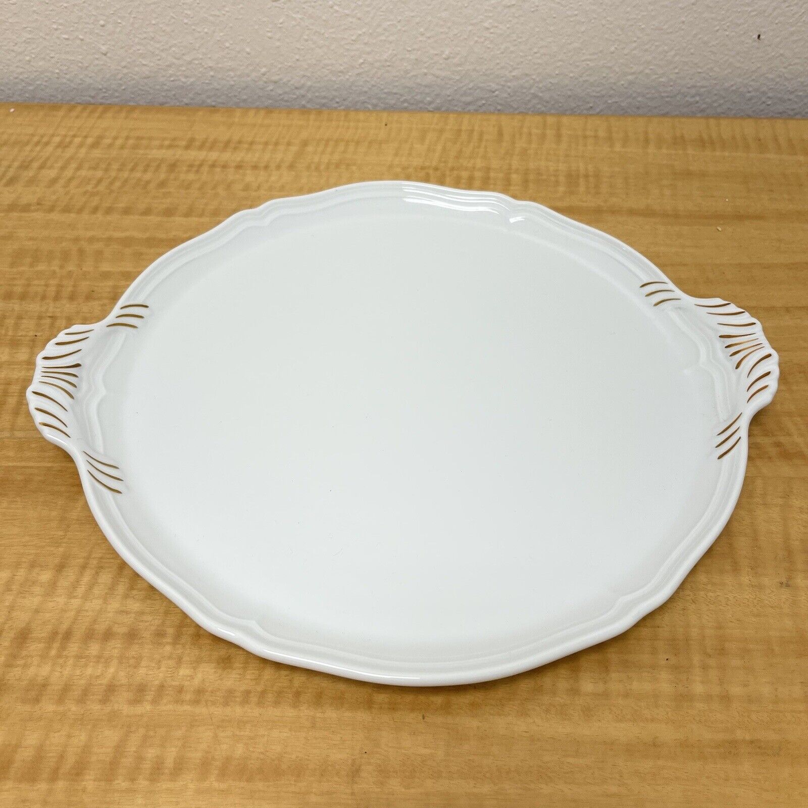 Richard Ginori White Gold Cake Tray Platter Handles Scalloped 11 7/8"