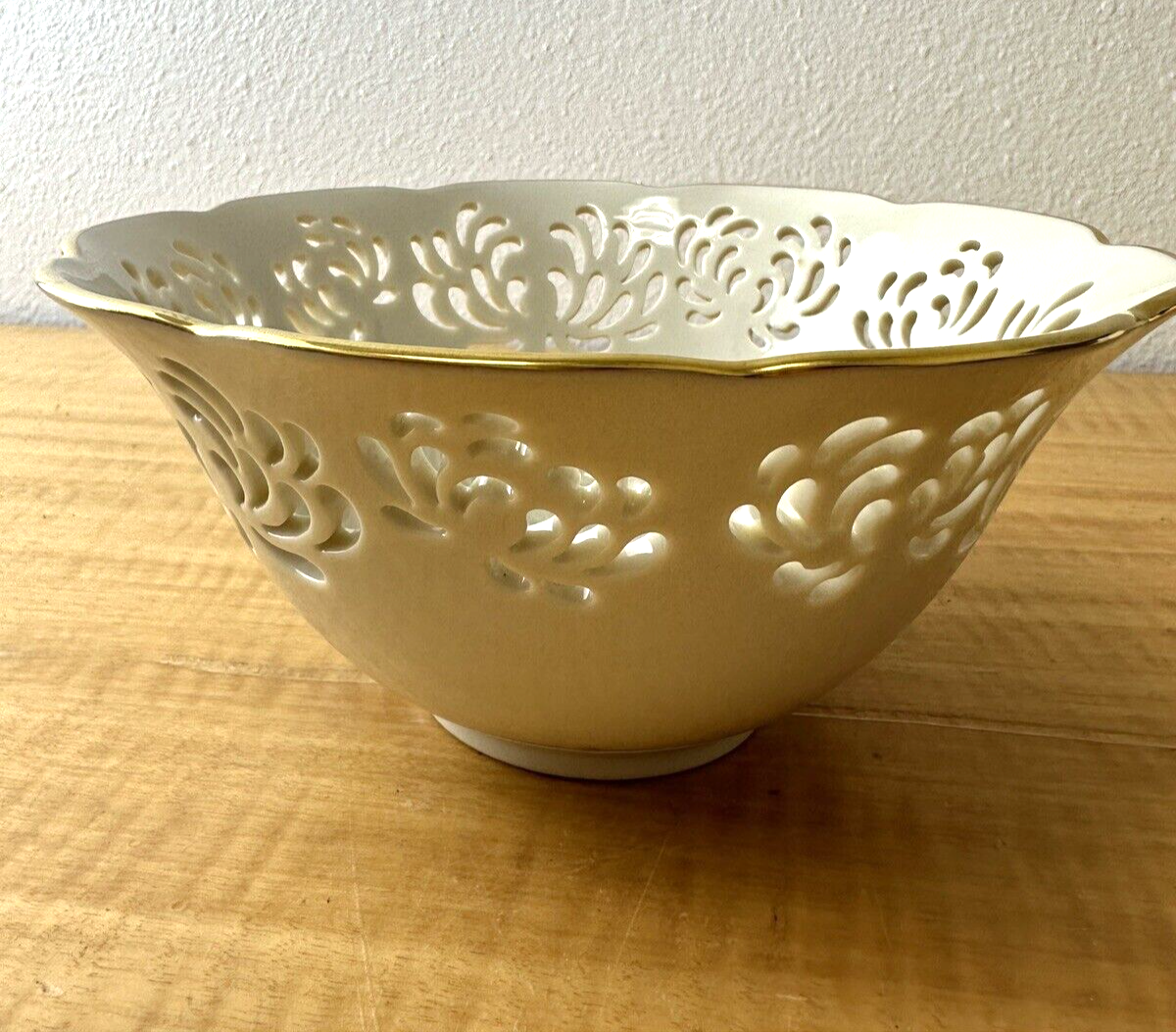Vintage Lenox China Westbury Large Bowl Punched Pattern Chrysanthamum Porcelain