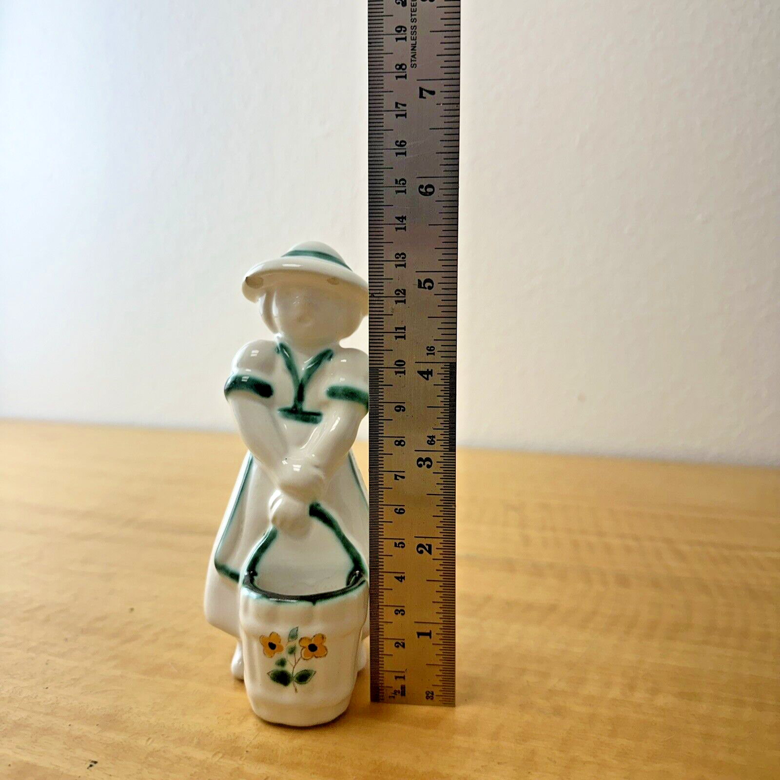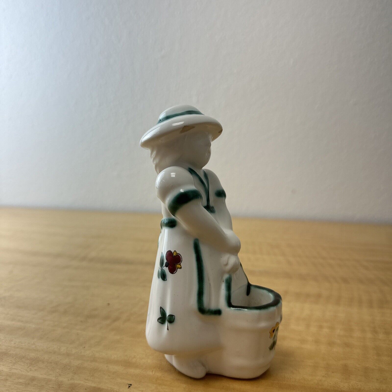 Gmundner Ceramic Woman With Basket Figurine Scattered Flower Pattern