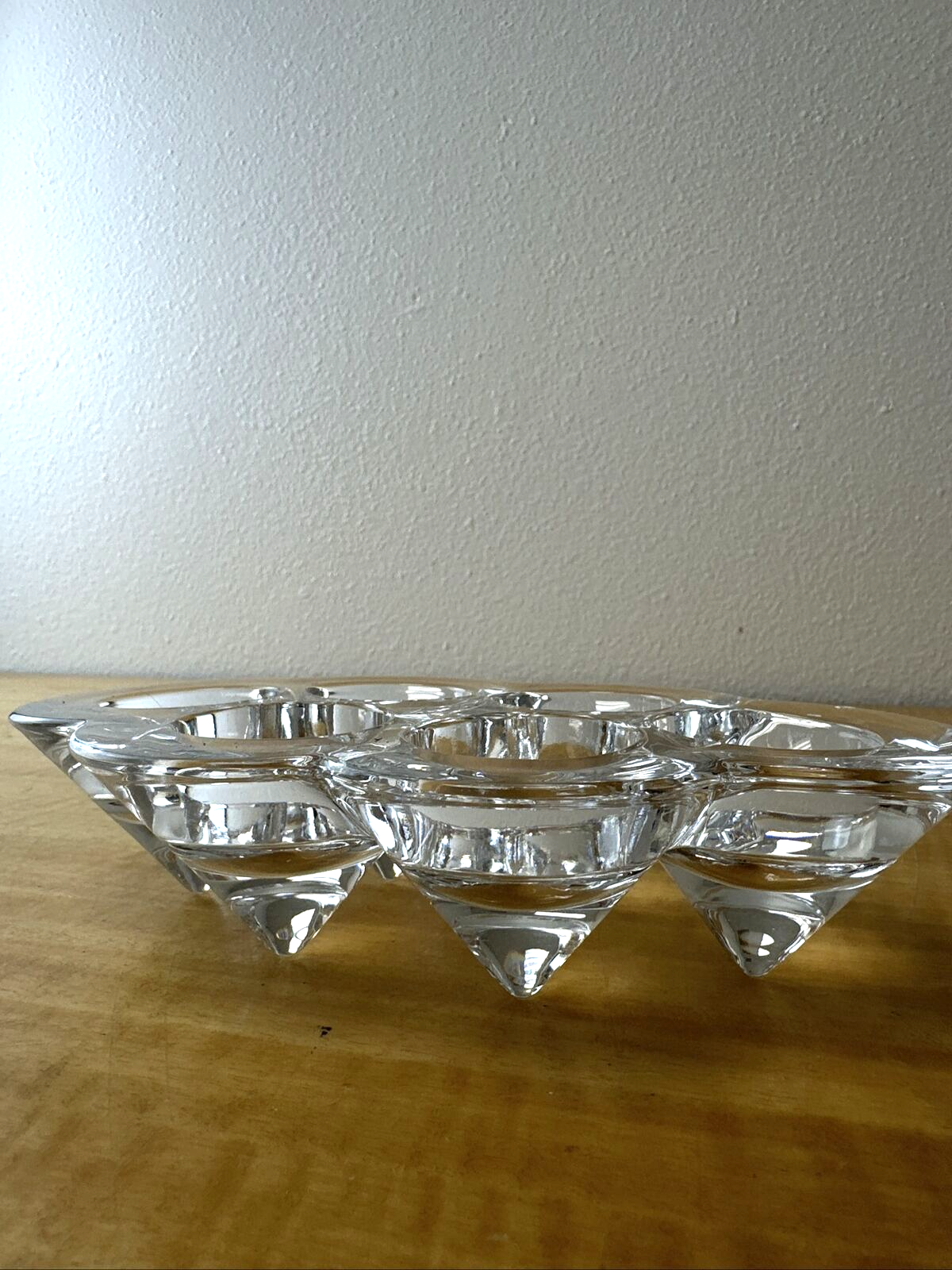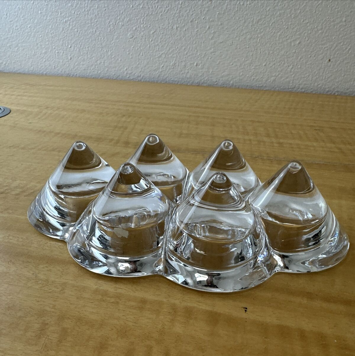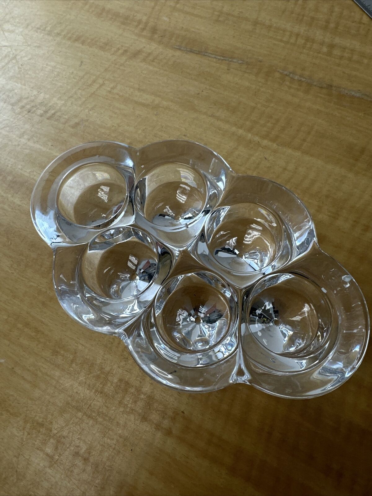 Clear Art Glass Honeycomb Tea Lite Candle Holder 6 Hole 8.5” X 5” X 2” Unique