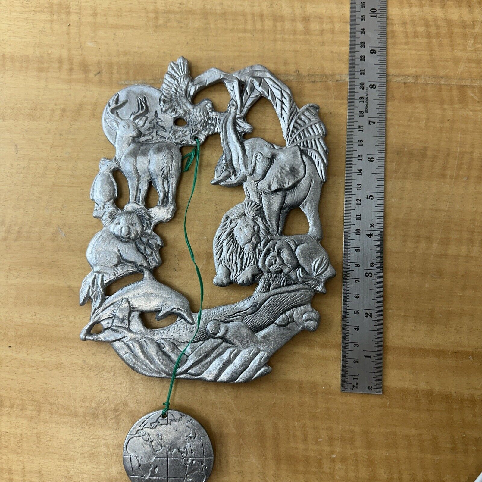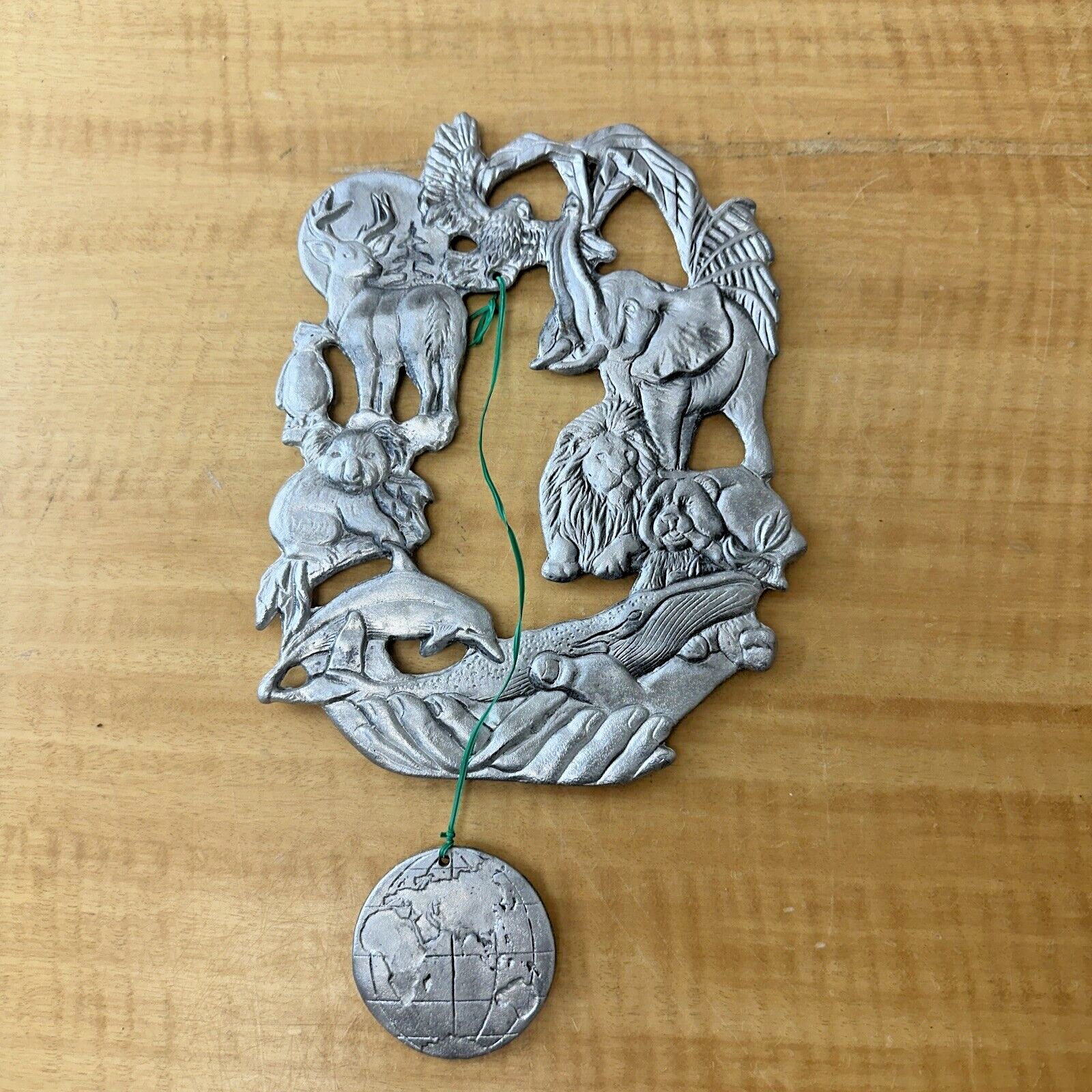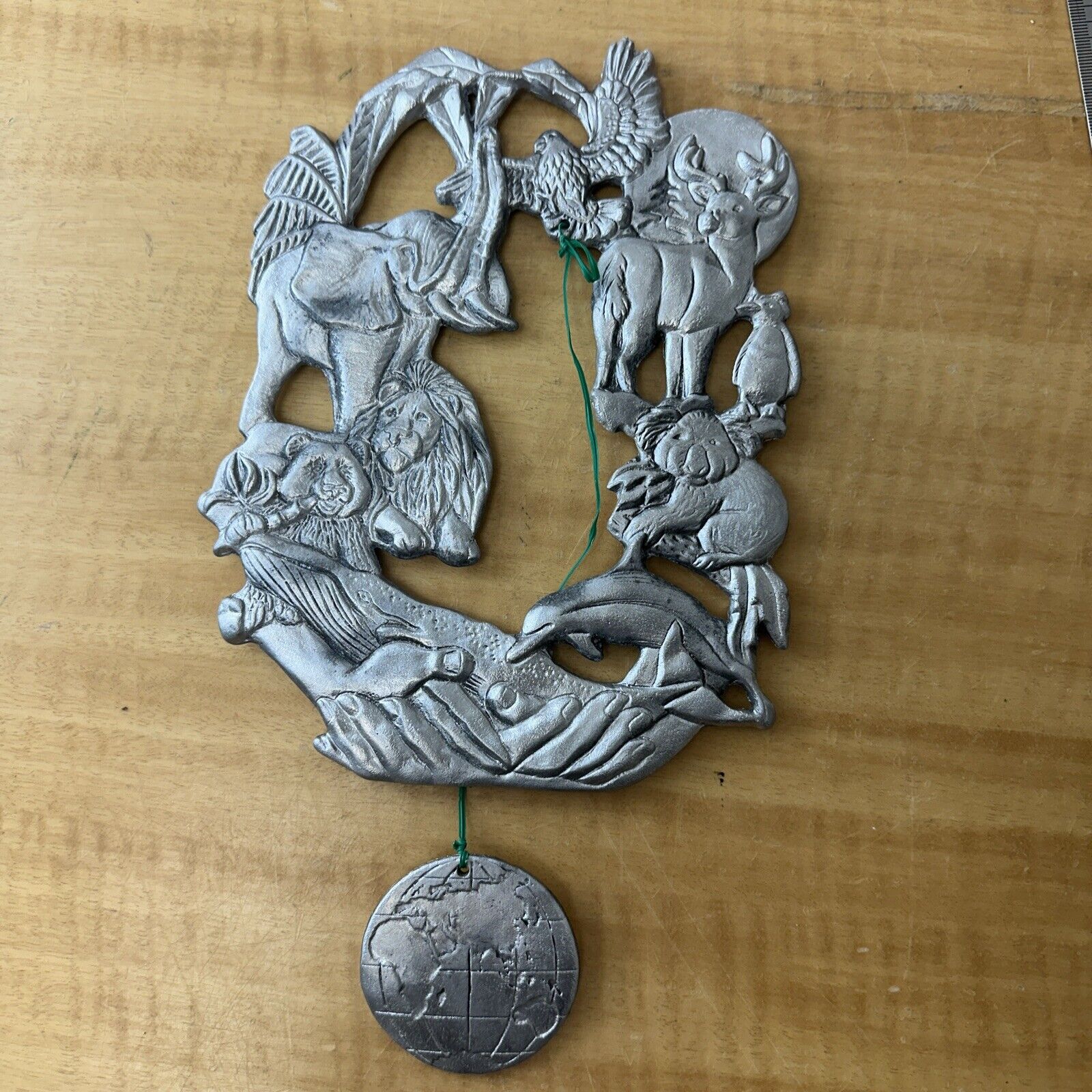 Vintage Ornate Cast Metal Animals Circle Of Life Wind Chime With Globe Knocker