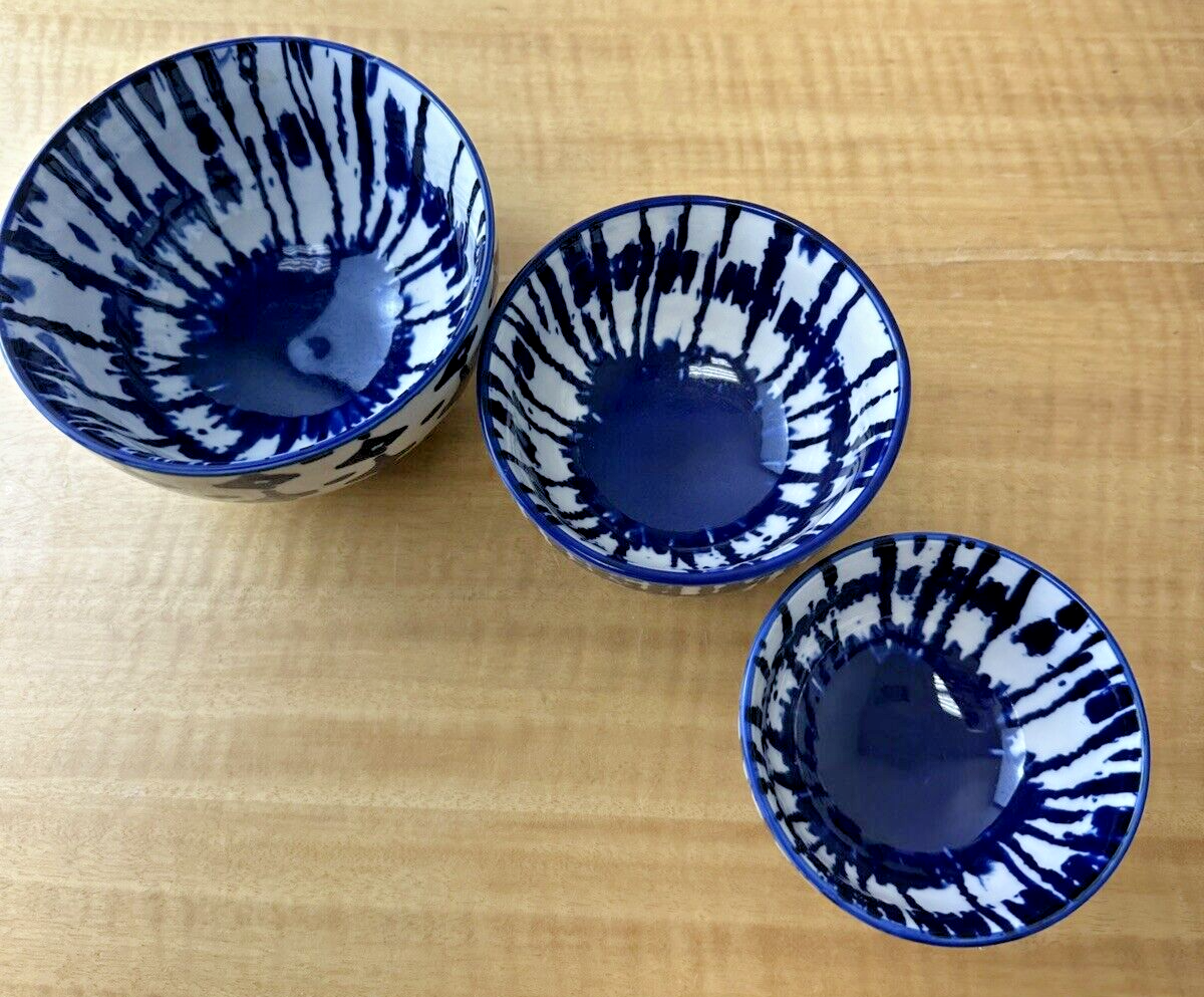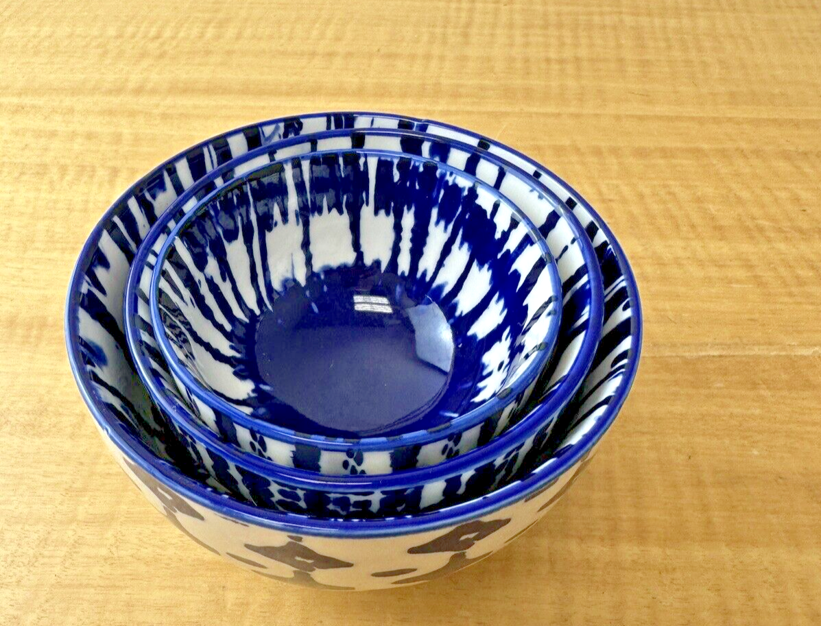 Indigo Nesting Bowls Beautiful Design For Display Or Use XLNT Condition