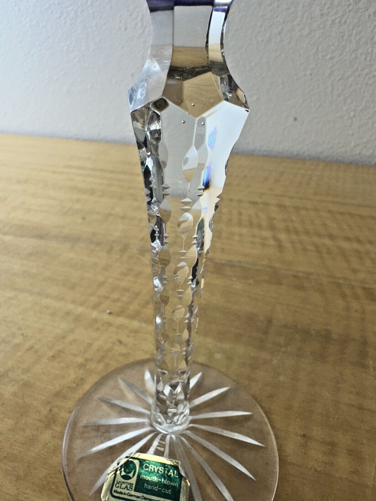AJKA BOHEMIAN CRYSTAL CUT TO CLEAR COBALT BLUE 8-1/8" WINE GLASS - MINT
