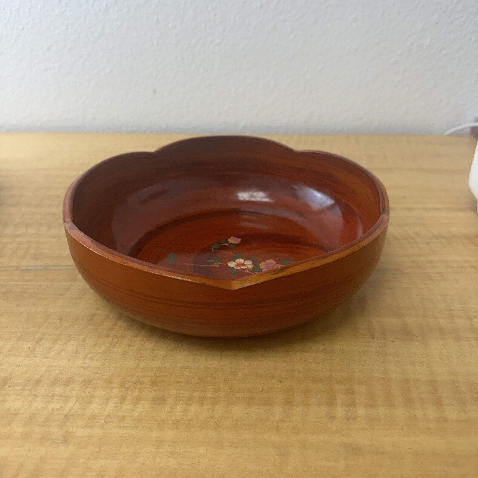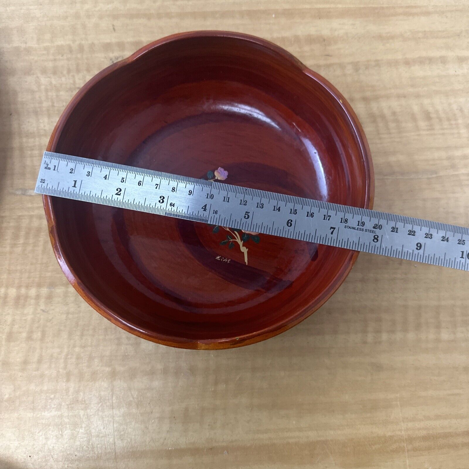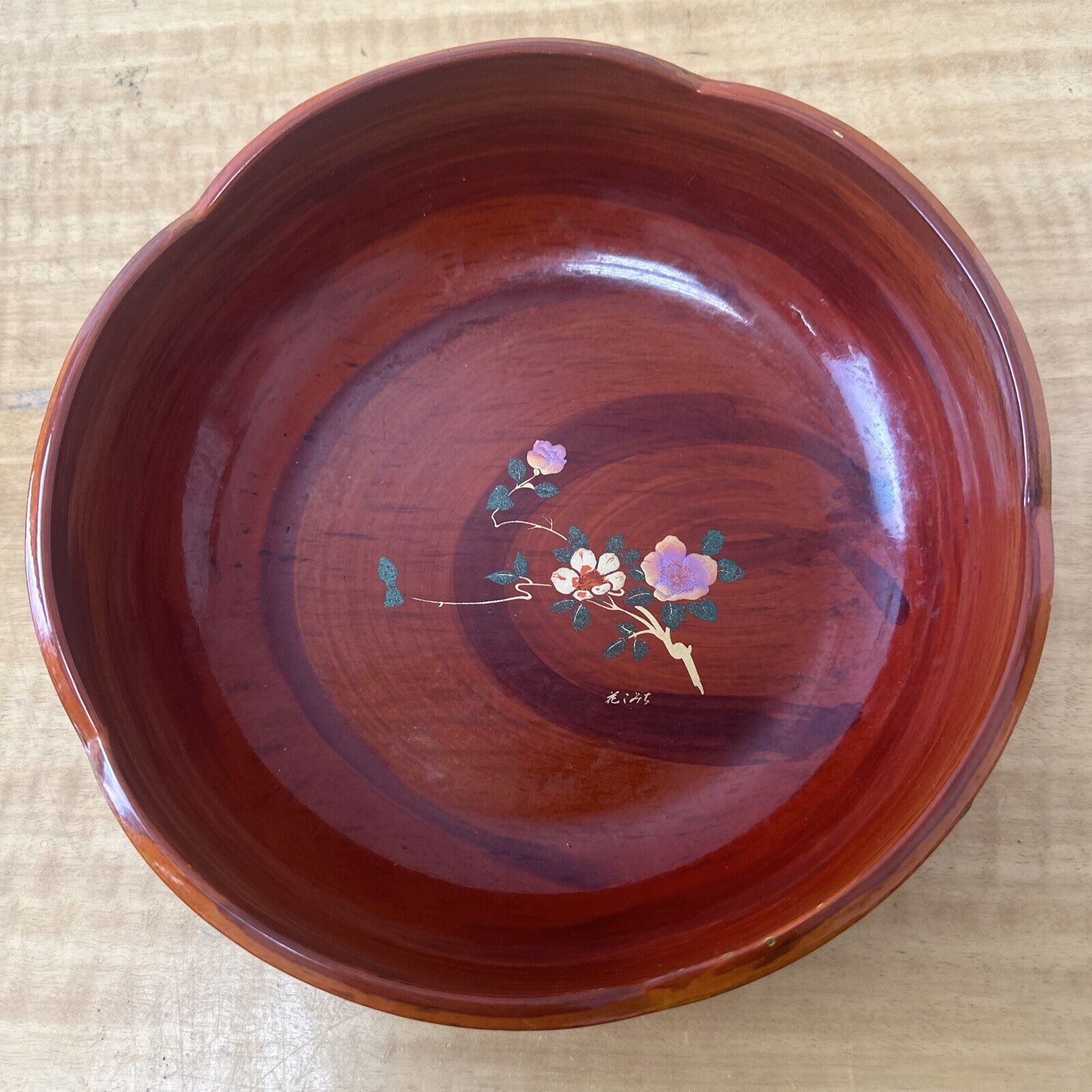 VTG Hand Painted Japanese Asian Lacquer Red Lacquerware Bowl with Flowers