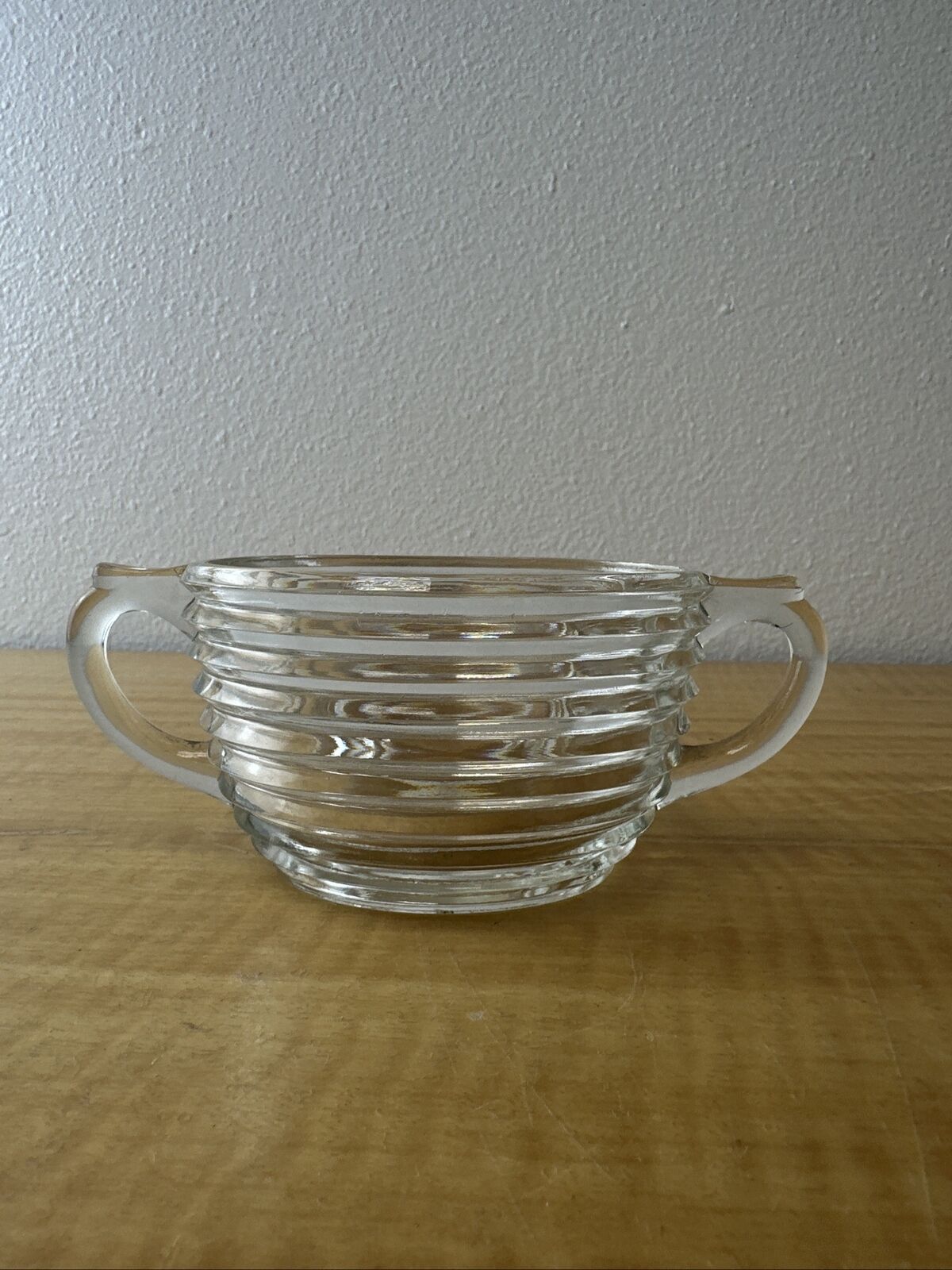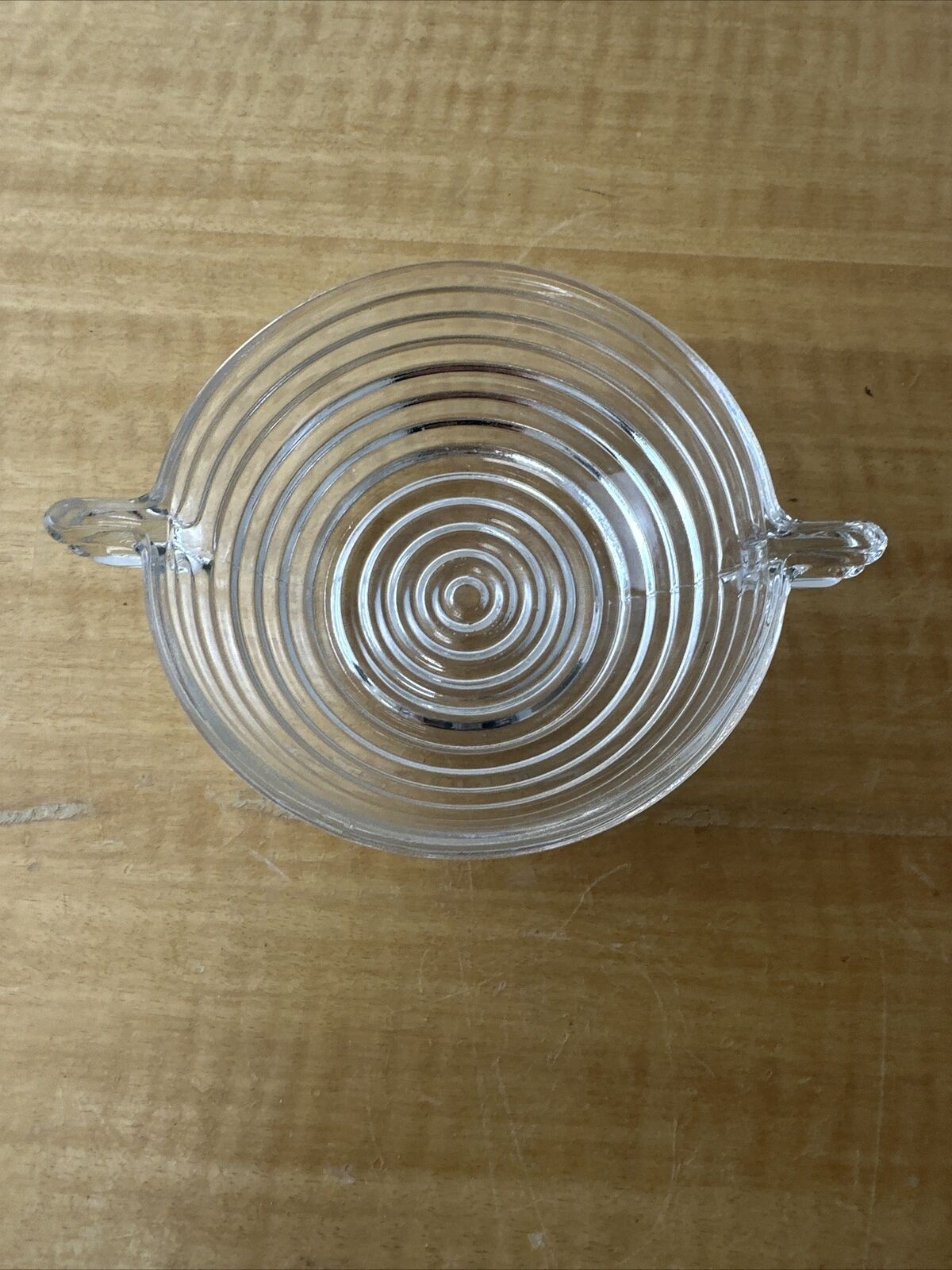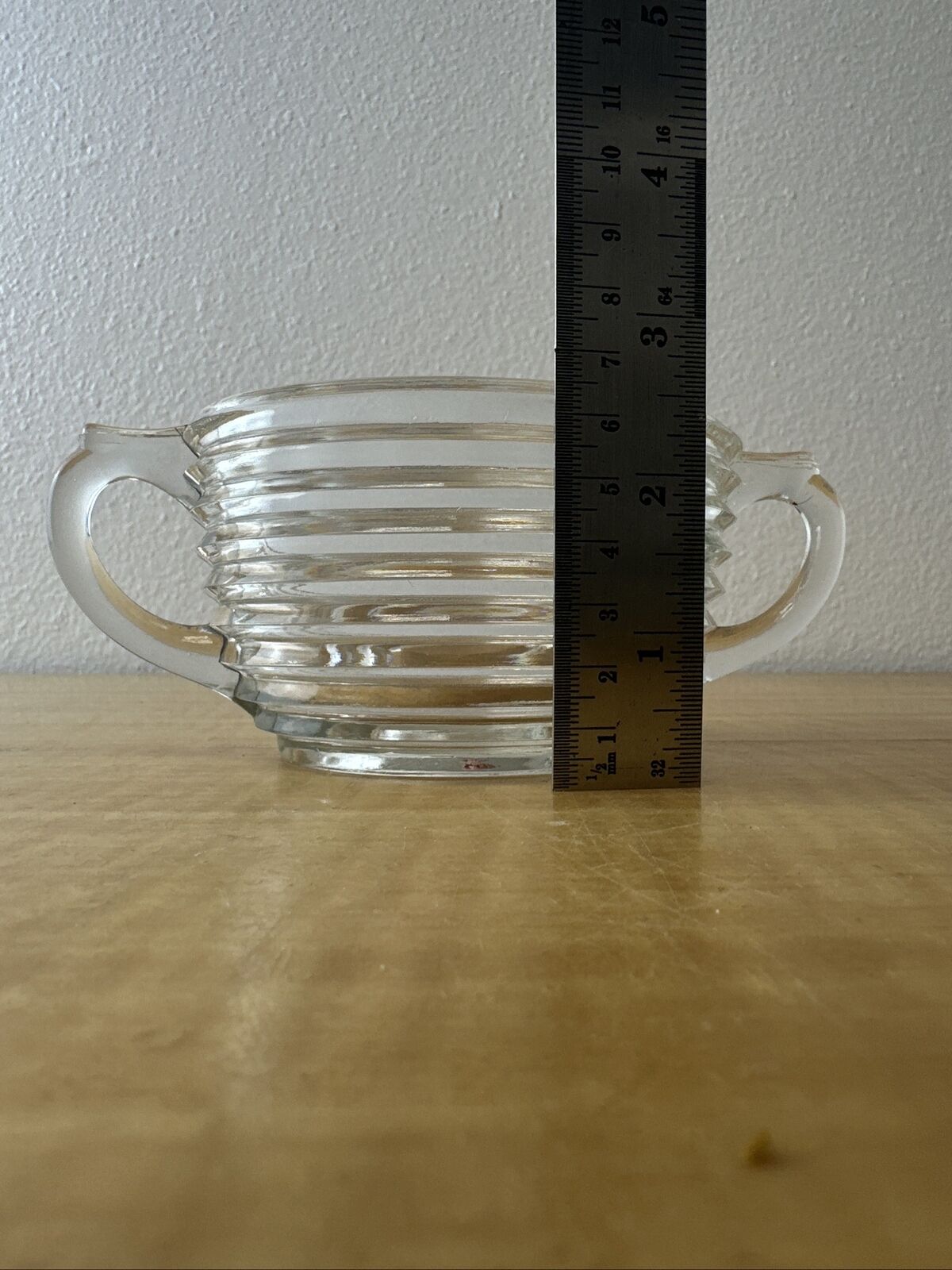 Anchor Hocking Manhattan Glass Handled Sugar Bowl 4 1/4in" Vintage Clear