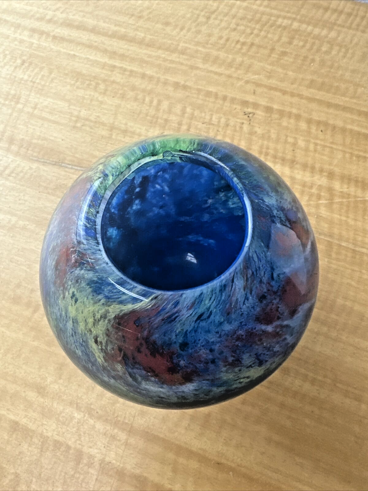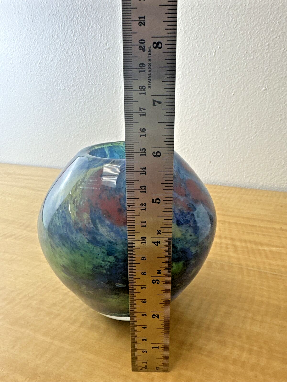 Crate and Barrel Art Glass Vase Multicolored Abstract Motif.