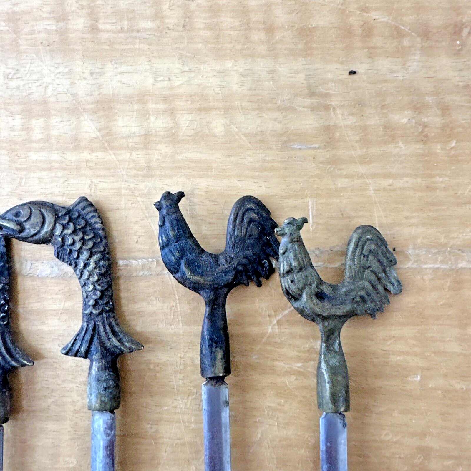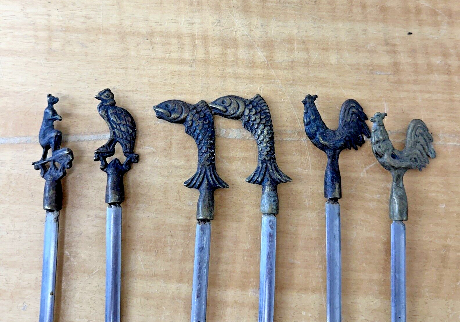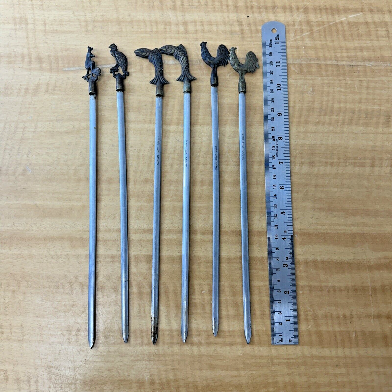 VTG 6pc Turkish Stainless Steel Brass Animals Kebob Skewers - Made in Turkey 12"