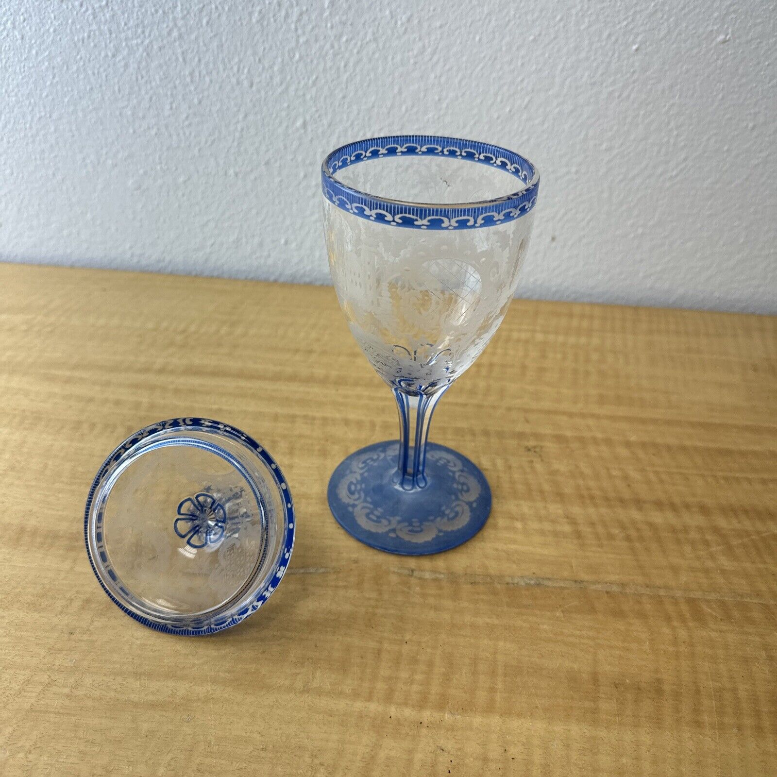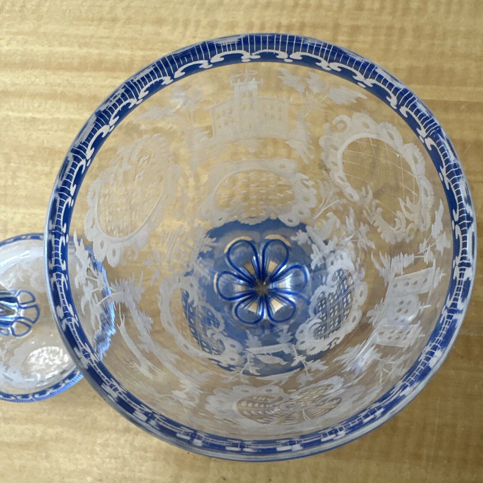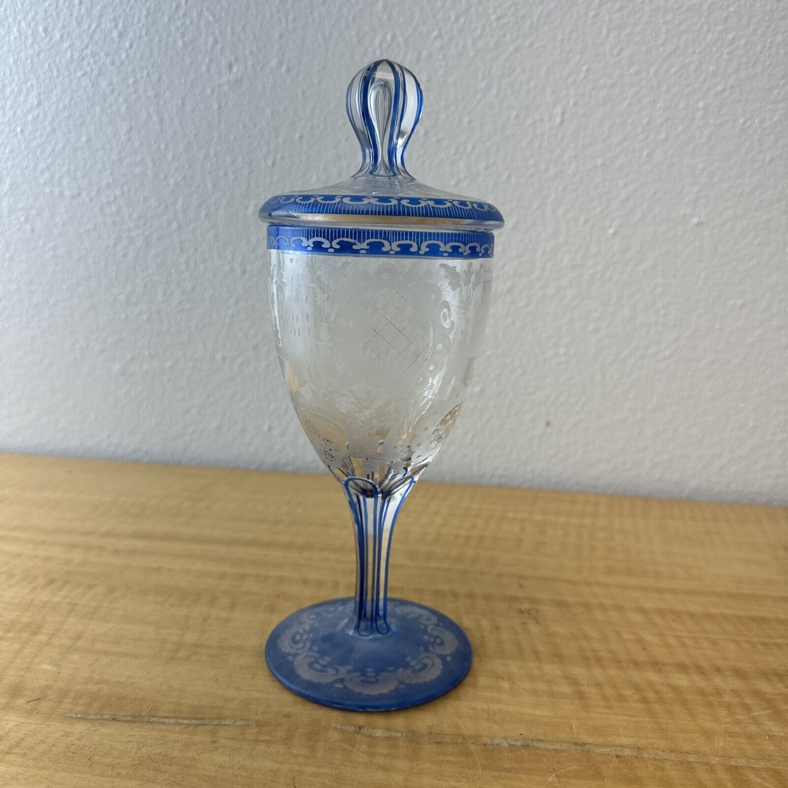 ANTIQUE BOHEMIAN 2-LAYER ENGRAVED GLASS WITH LID