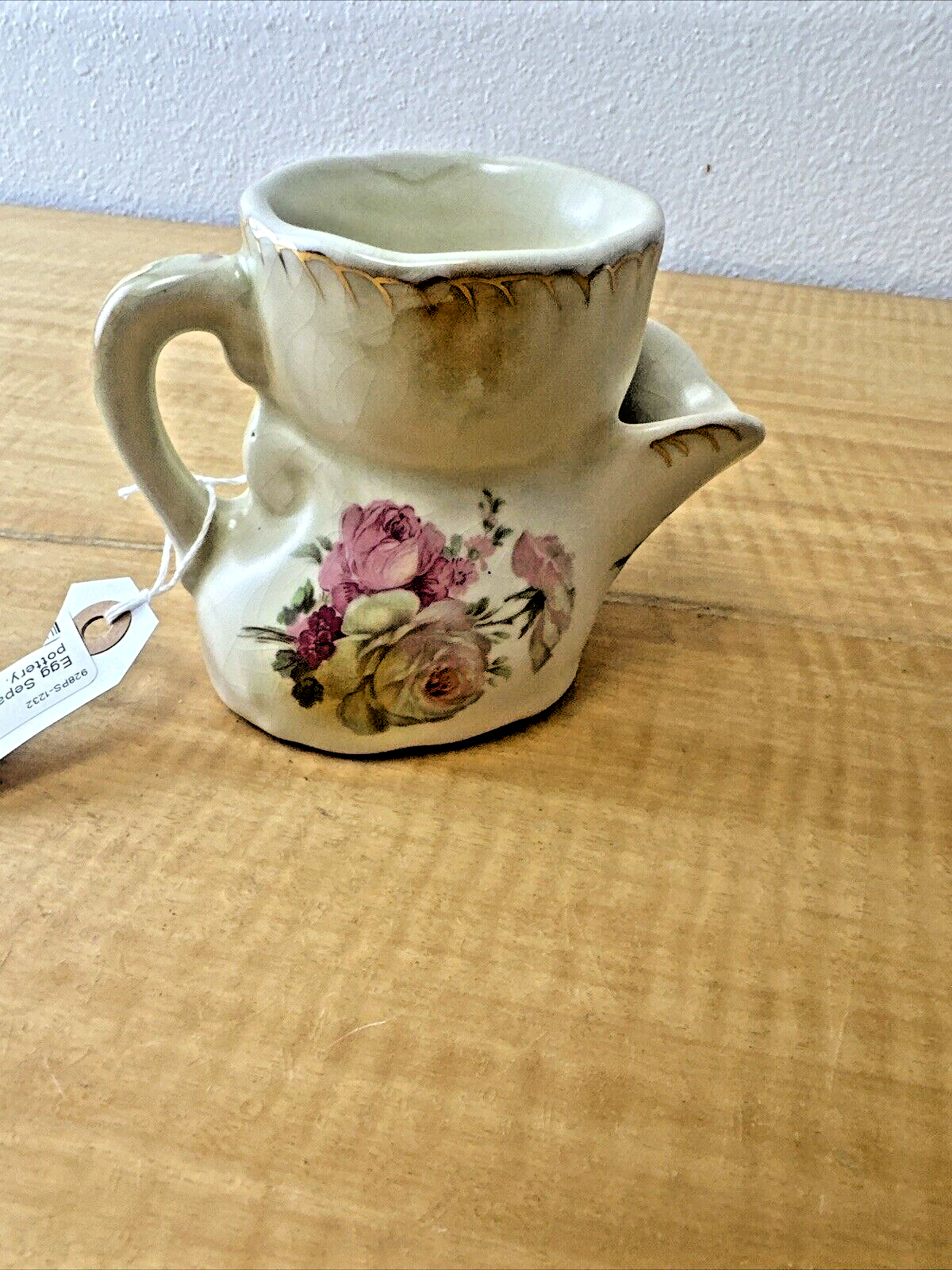 STAFFORDSHIRE POTTERY ENGLAND TEA STRAINER PINK ROSES POT/PITCHER, VINTAGE- RARE