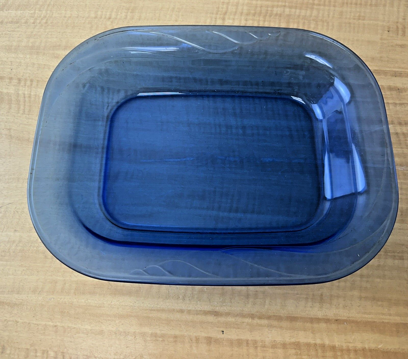 Cobalt Blue Vintage Glass RARE Swirl Pattern Platter Serving Tray 12"x15"x1.25"