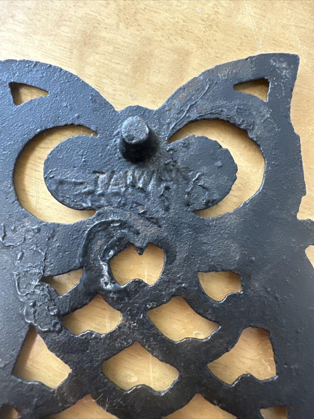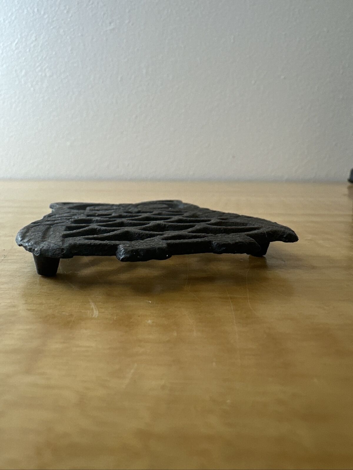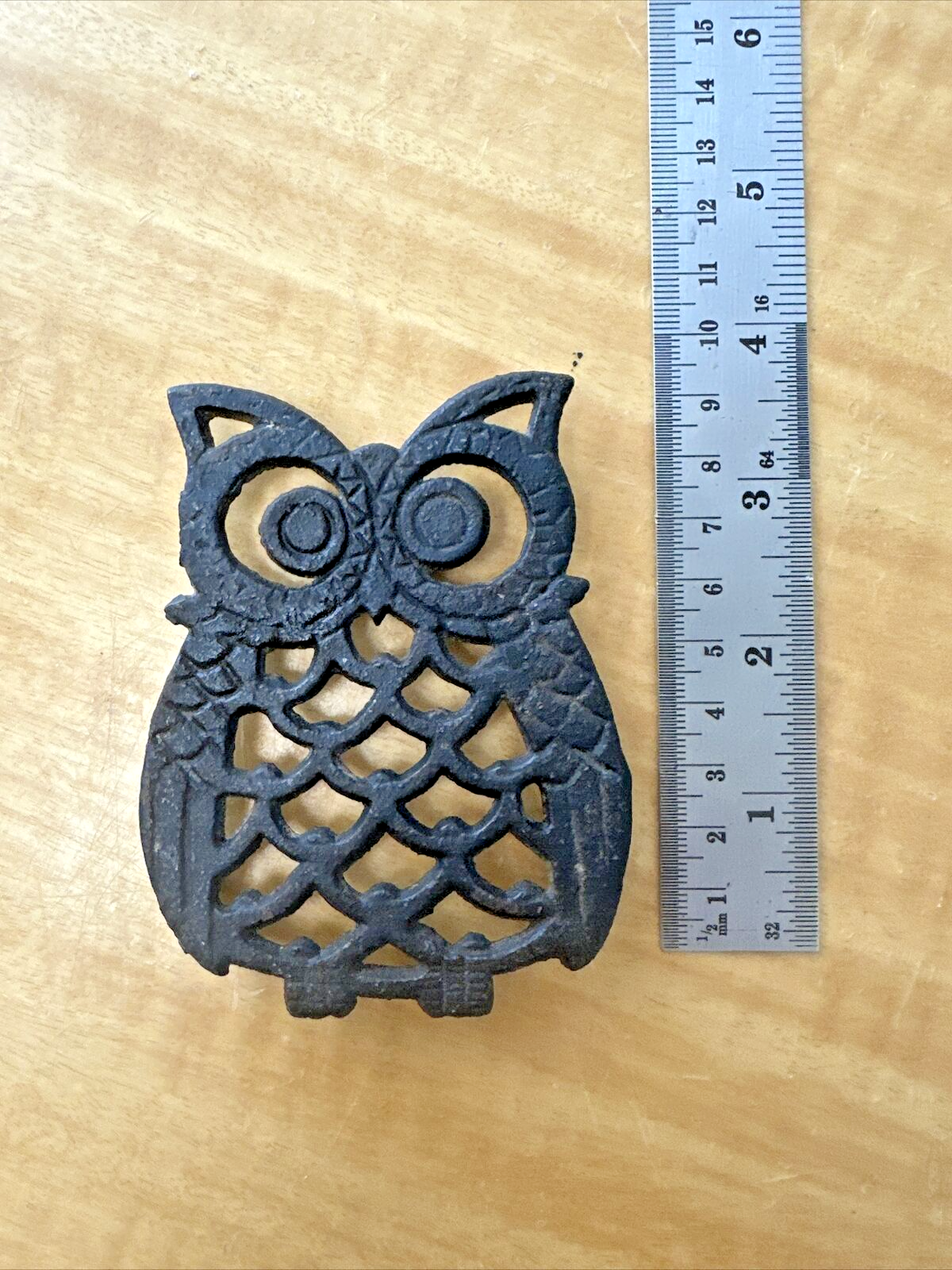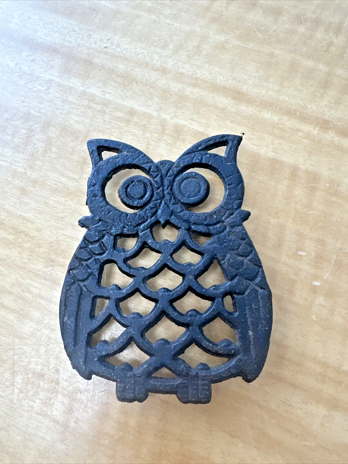 Vintage Cast Iron Owl Trivet Hot Plate Black 3 Legs 4" Taiwan