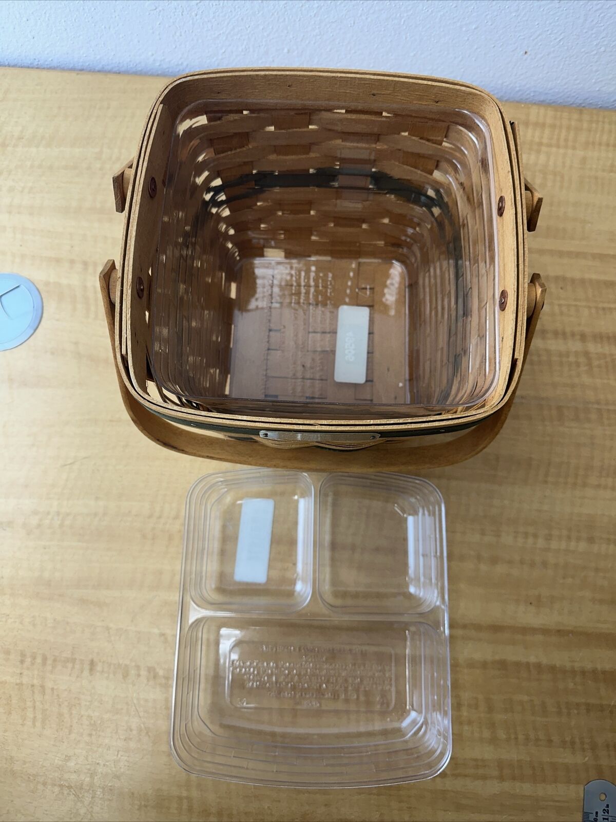 Longaberger Cranberry Basket Set Green w/ plastic liners