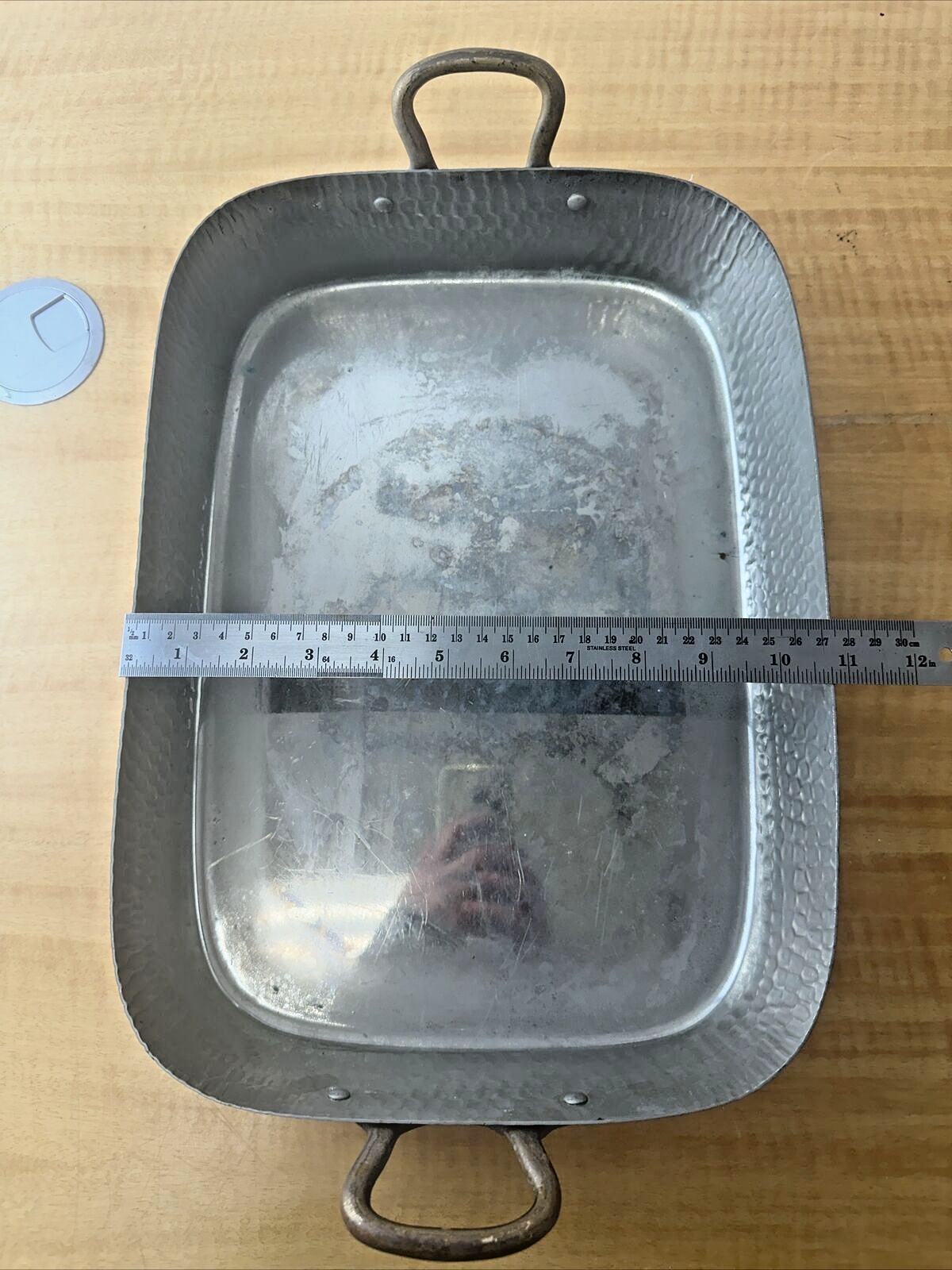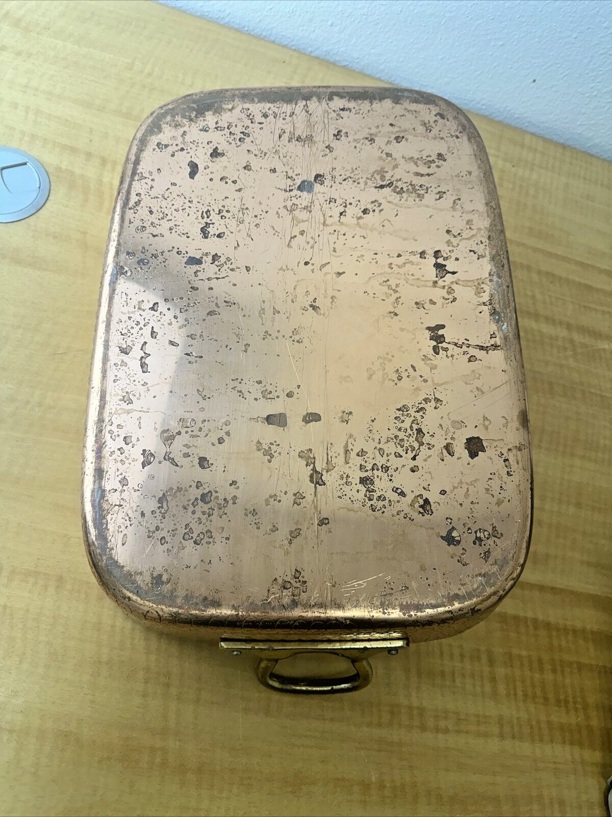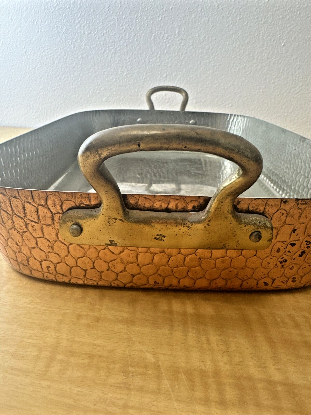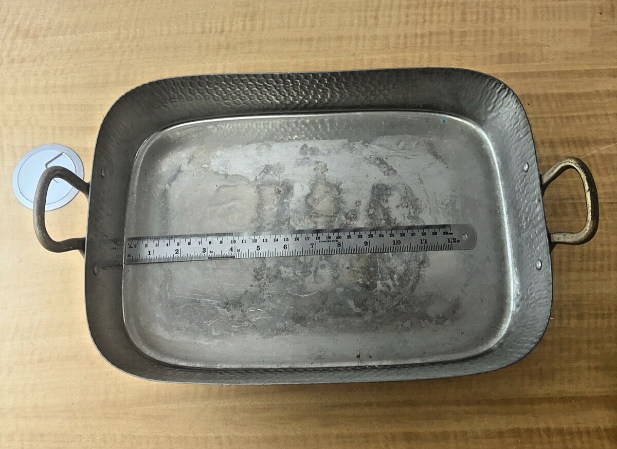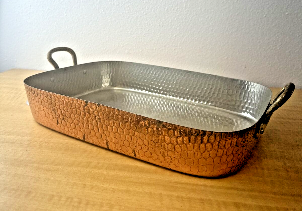 Vintage Copper Roasting Pan with Brass Handles - 15" x 11"x 2.75"