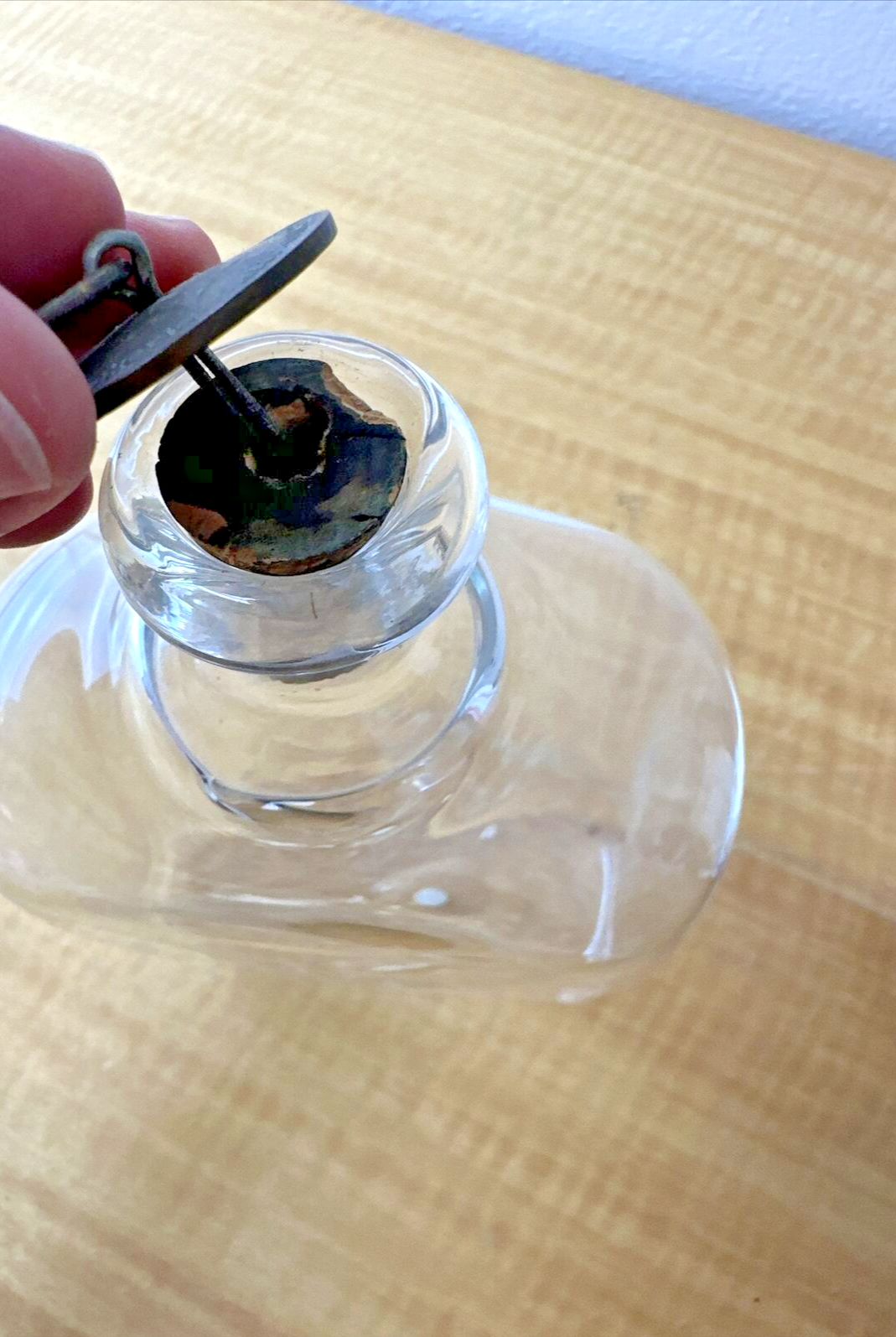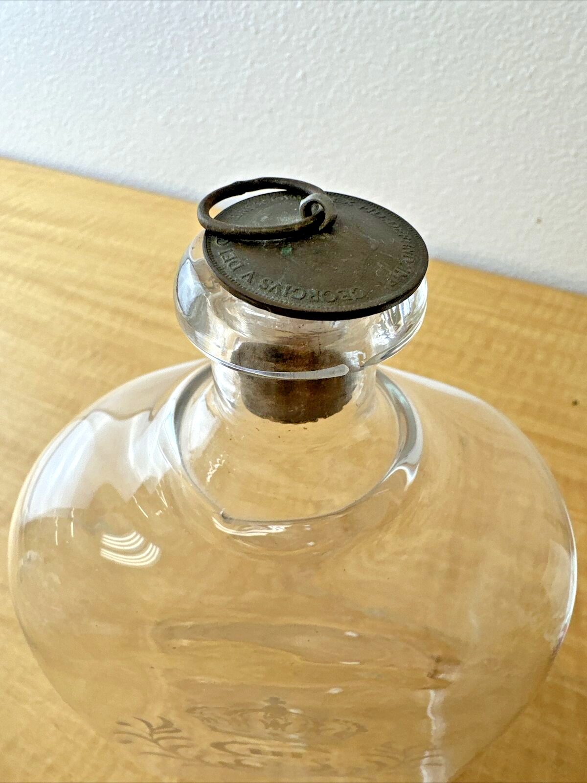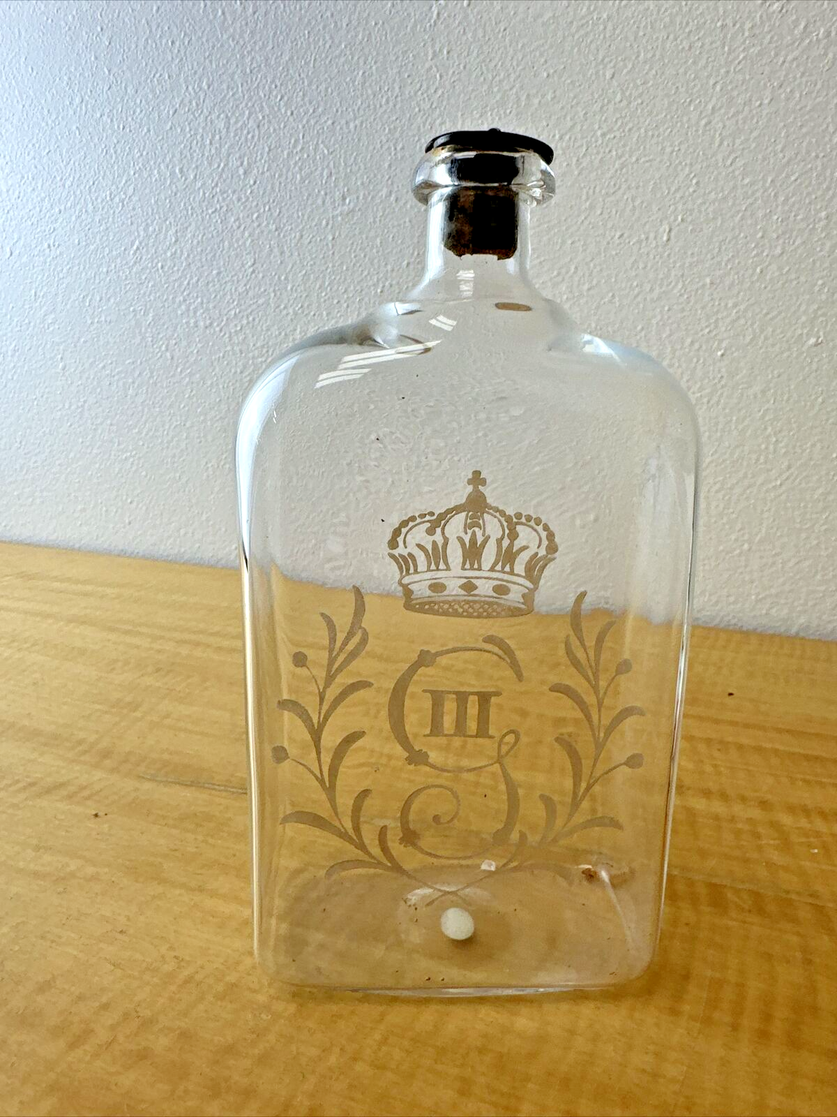 KING Gustav III Swedish Glass Flask Brännvinsflaskor ENGRAVED monogram 1671-cork