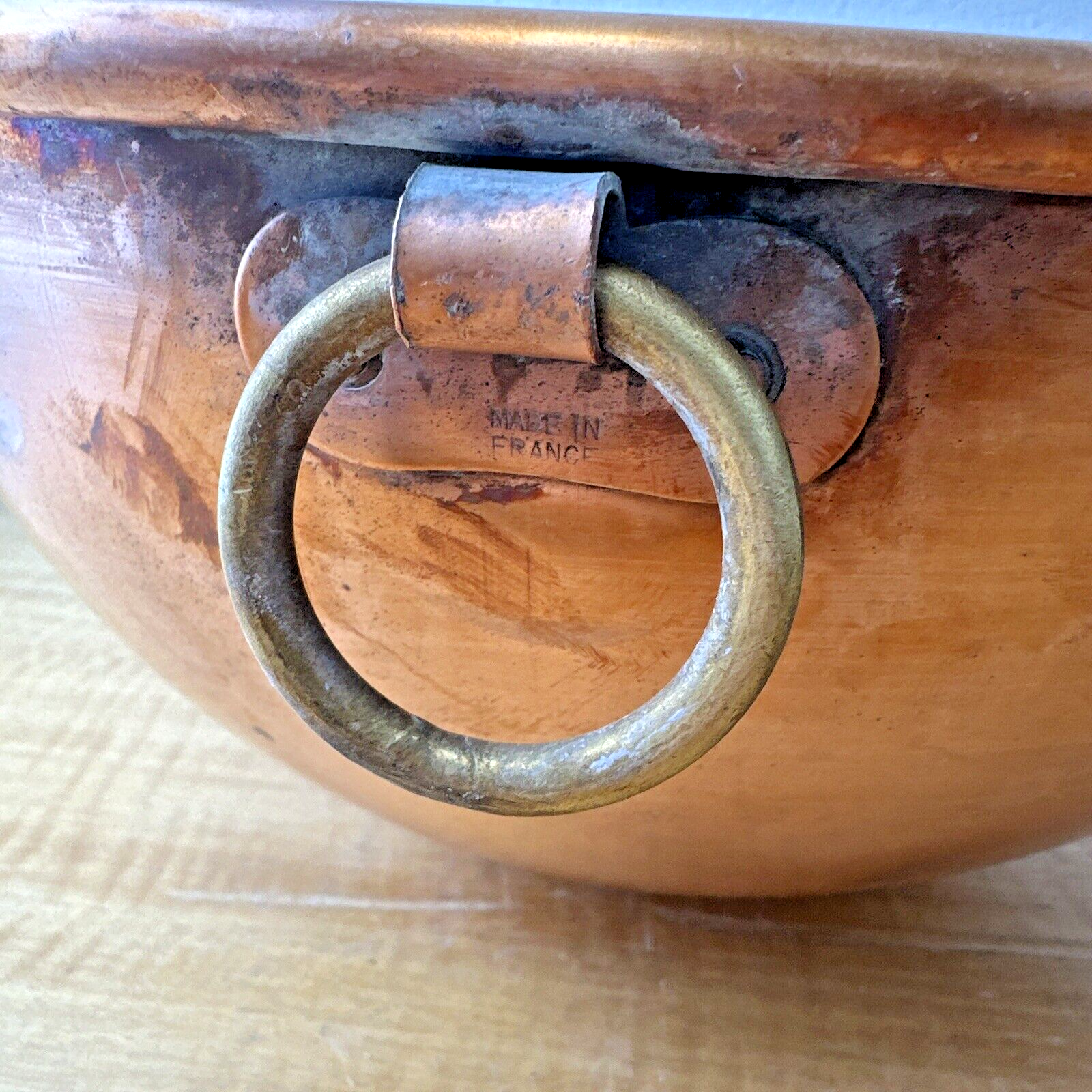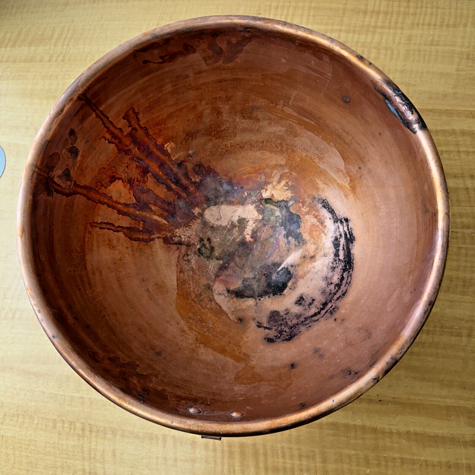 Antique French Heavy Solid Copper 12 3/8" Mixing Bowl Rolled Edge~Made in France