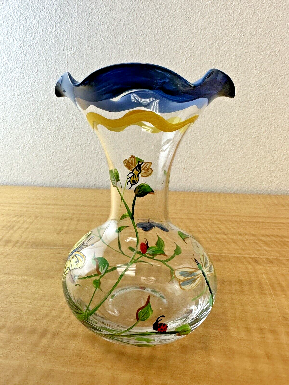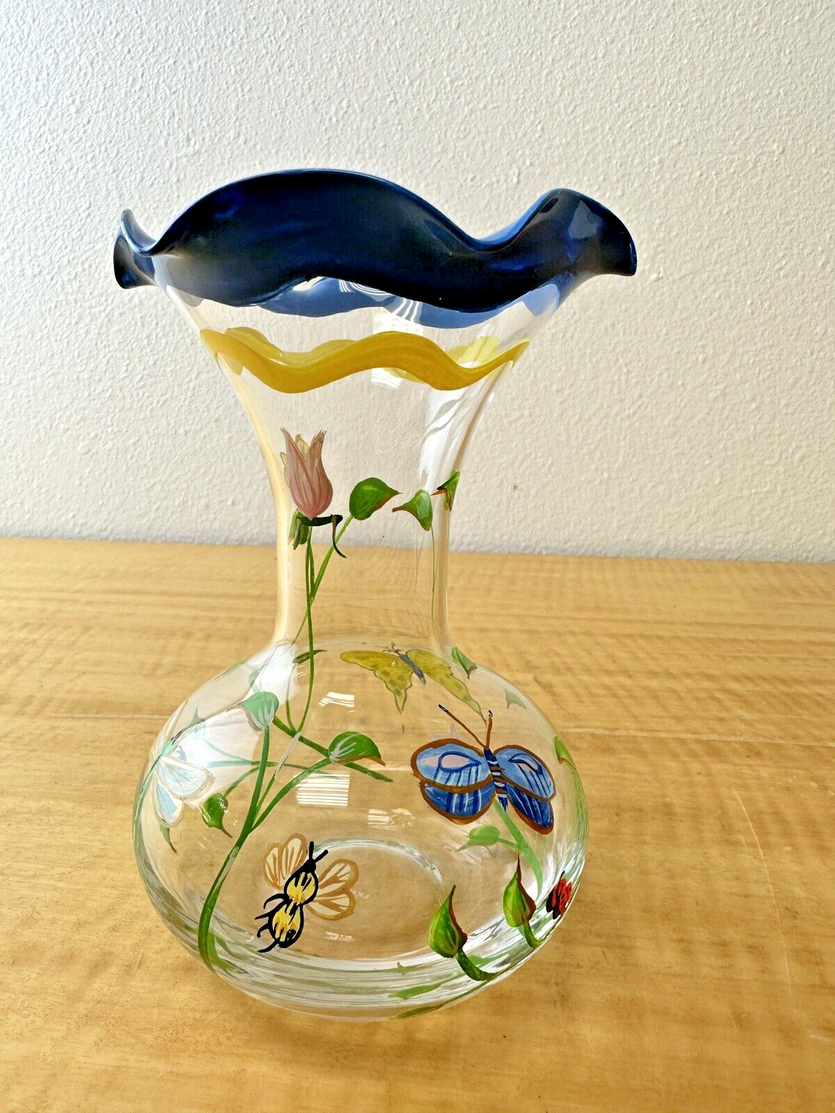Lenox Vase Butterfly Meadow Hand Painted Glass Vintage 6”Tall