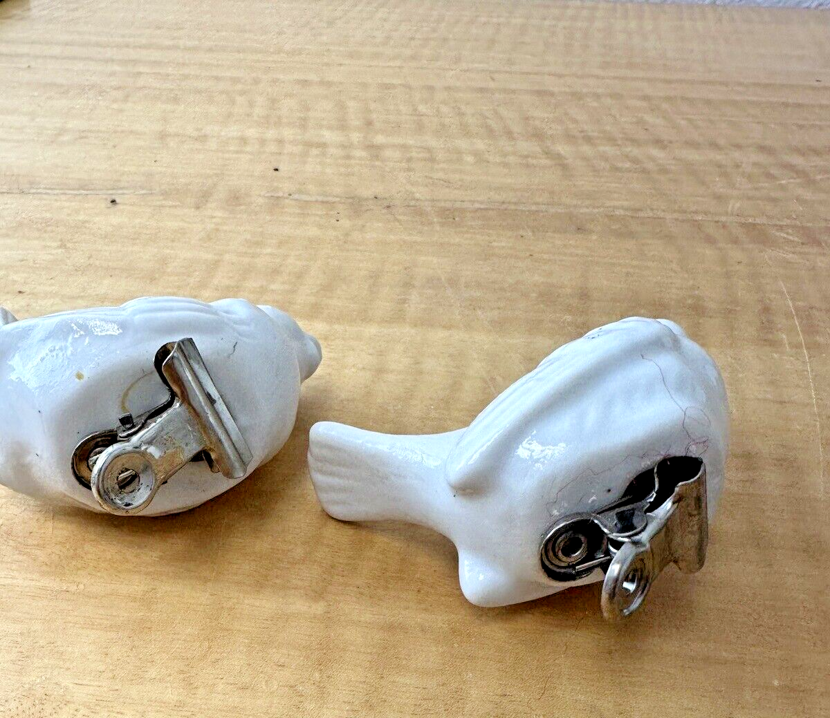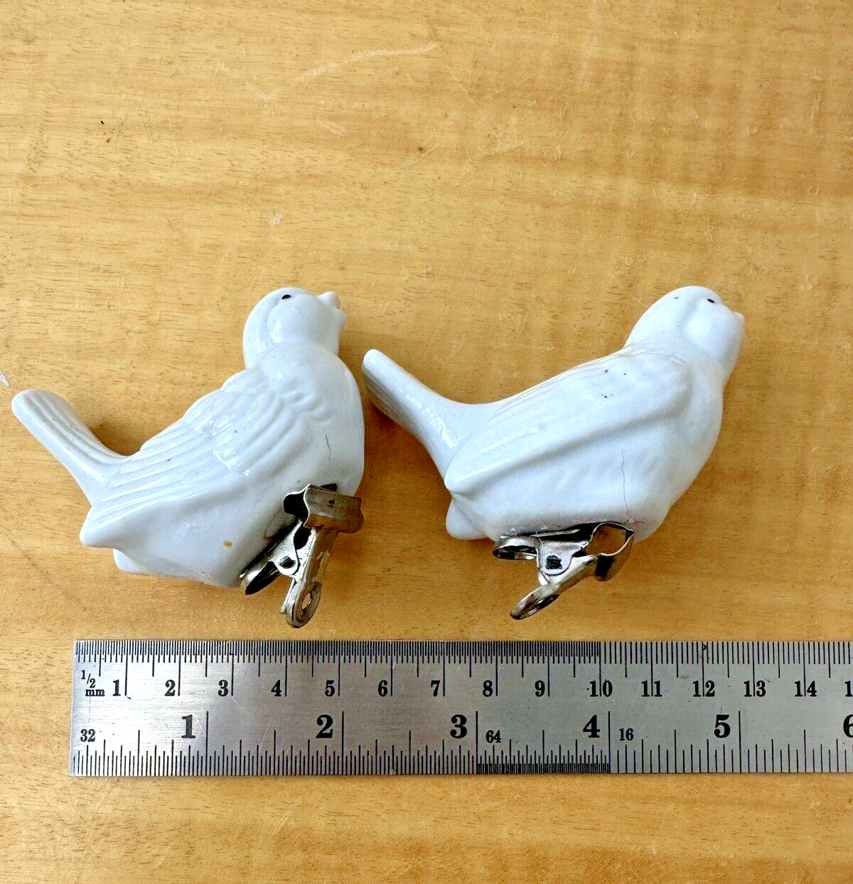 Vintage Bird Ornaments Clip On White Ceramic Beauties Two Not Matching Pair