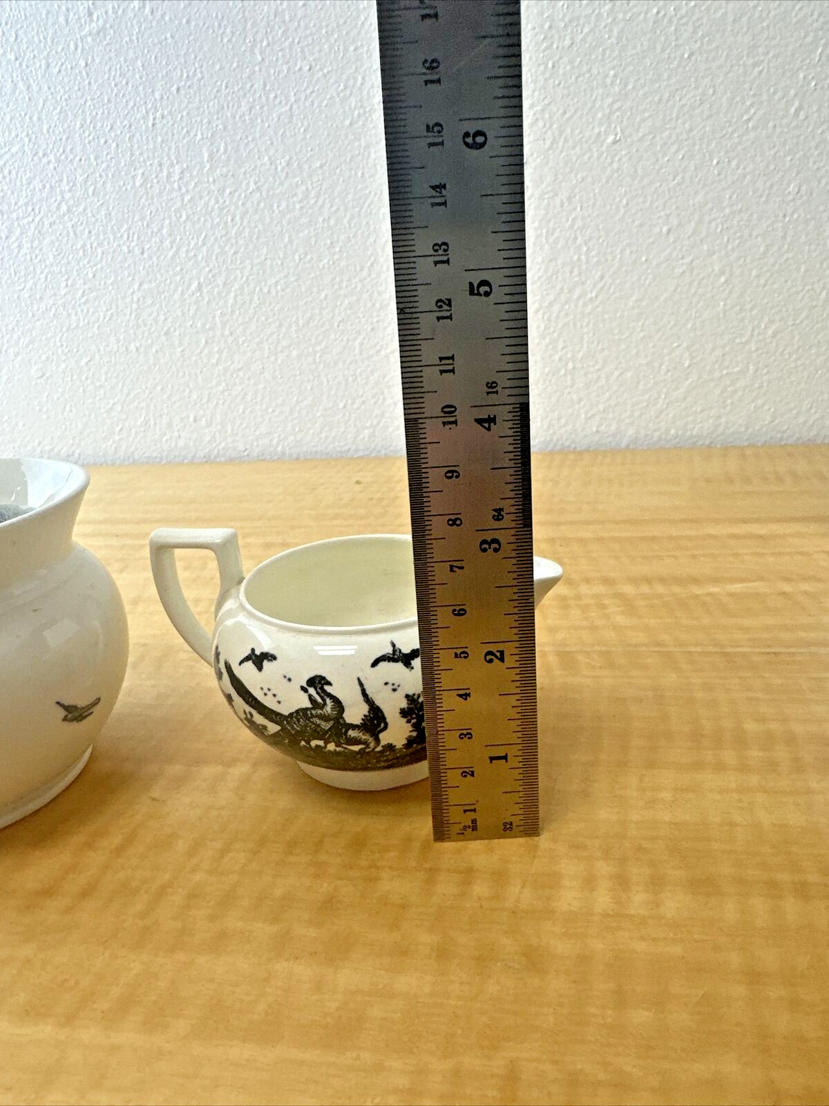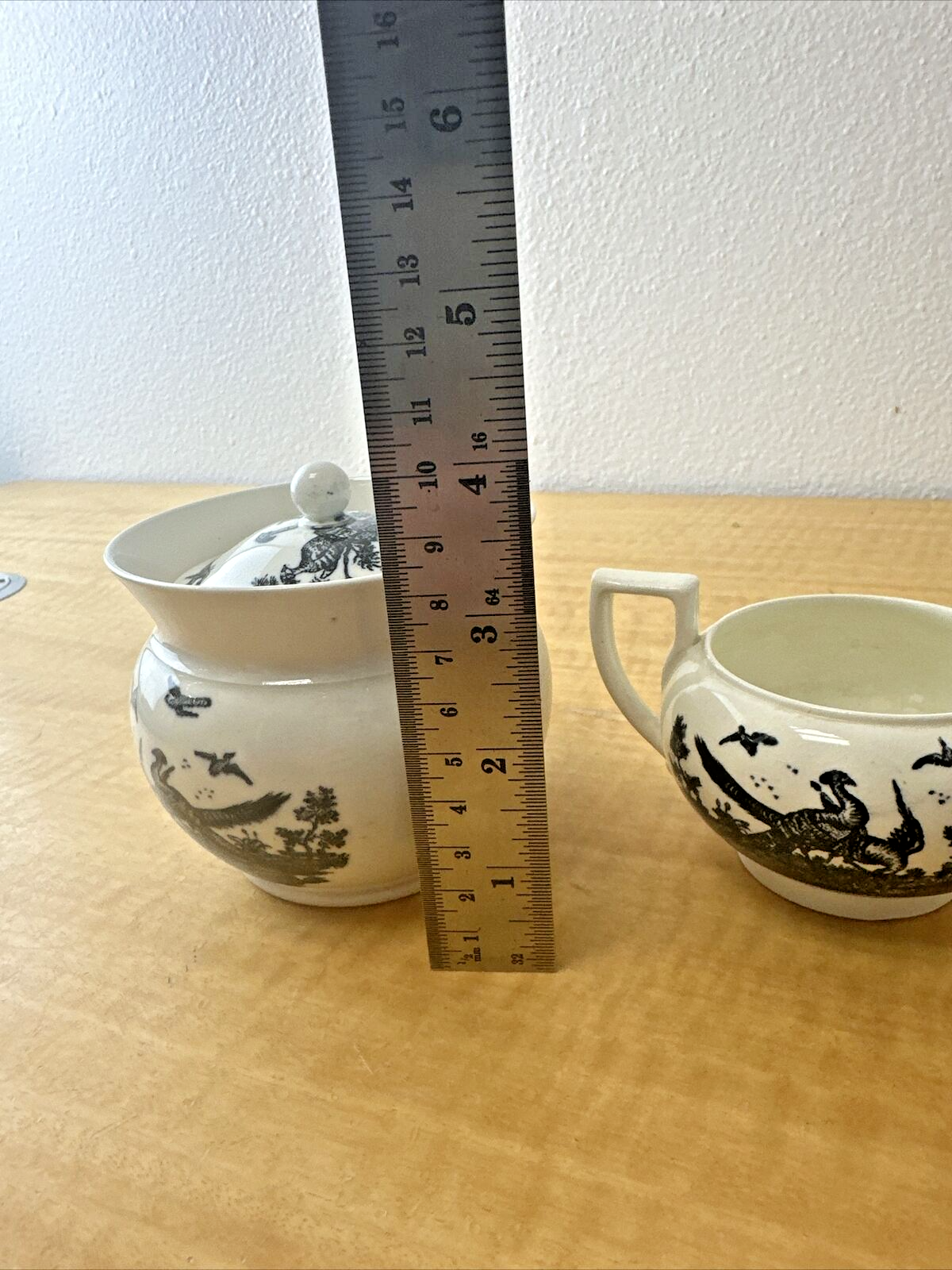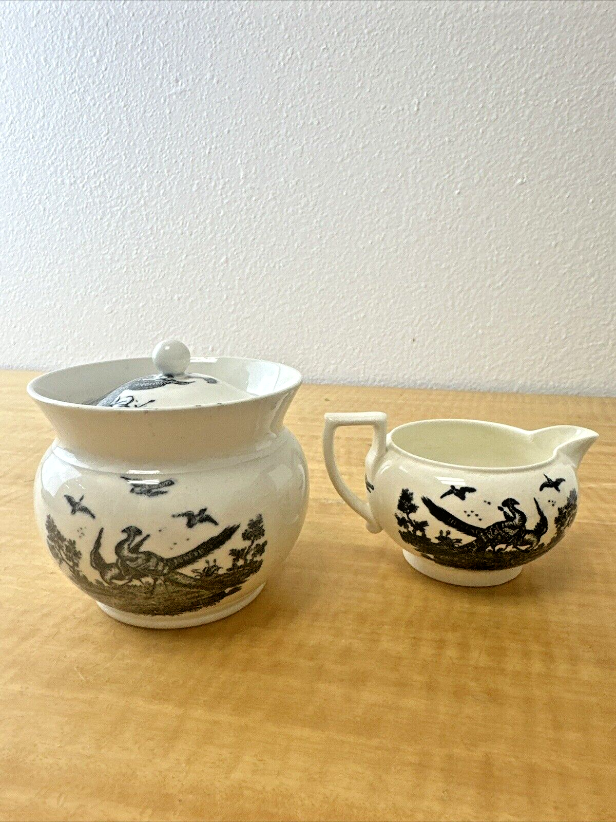 Wedgwood Liverpool Bird Black Transferware 3 Piece Sugar & Creamer RARE
