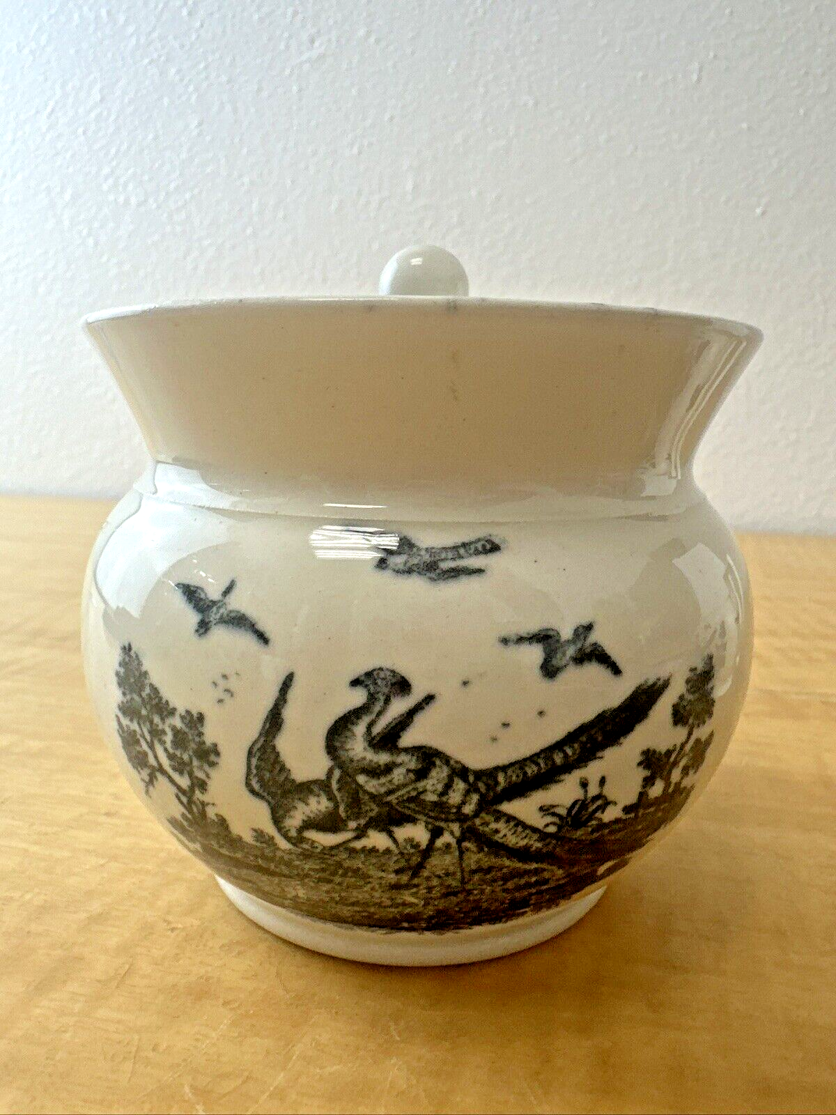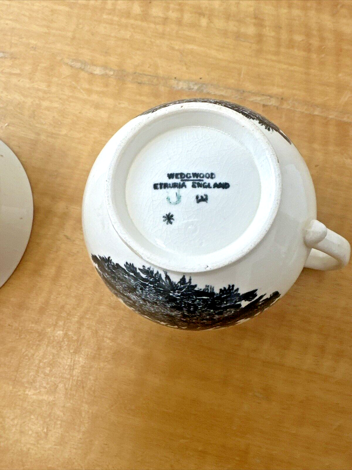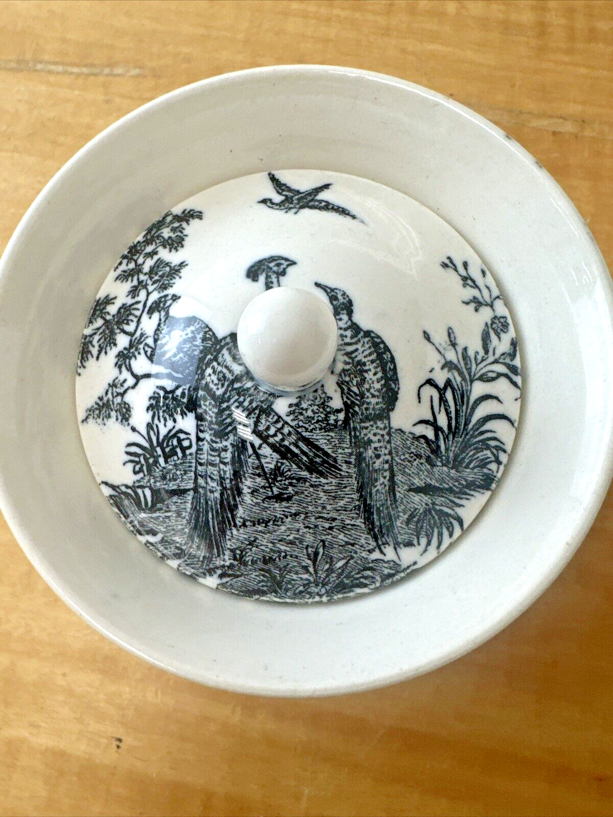 Wedgwood Liverpool Bird Black Transferware 3 Piece Sugar & Creamer RARE