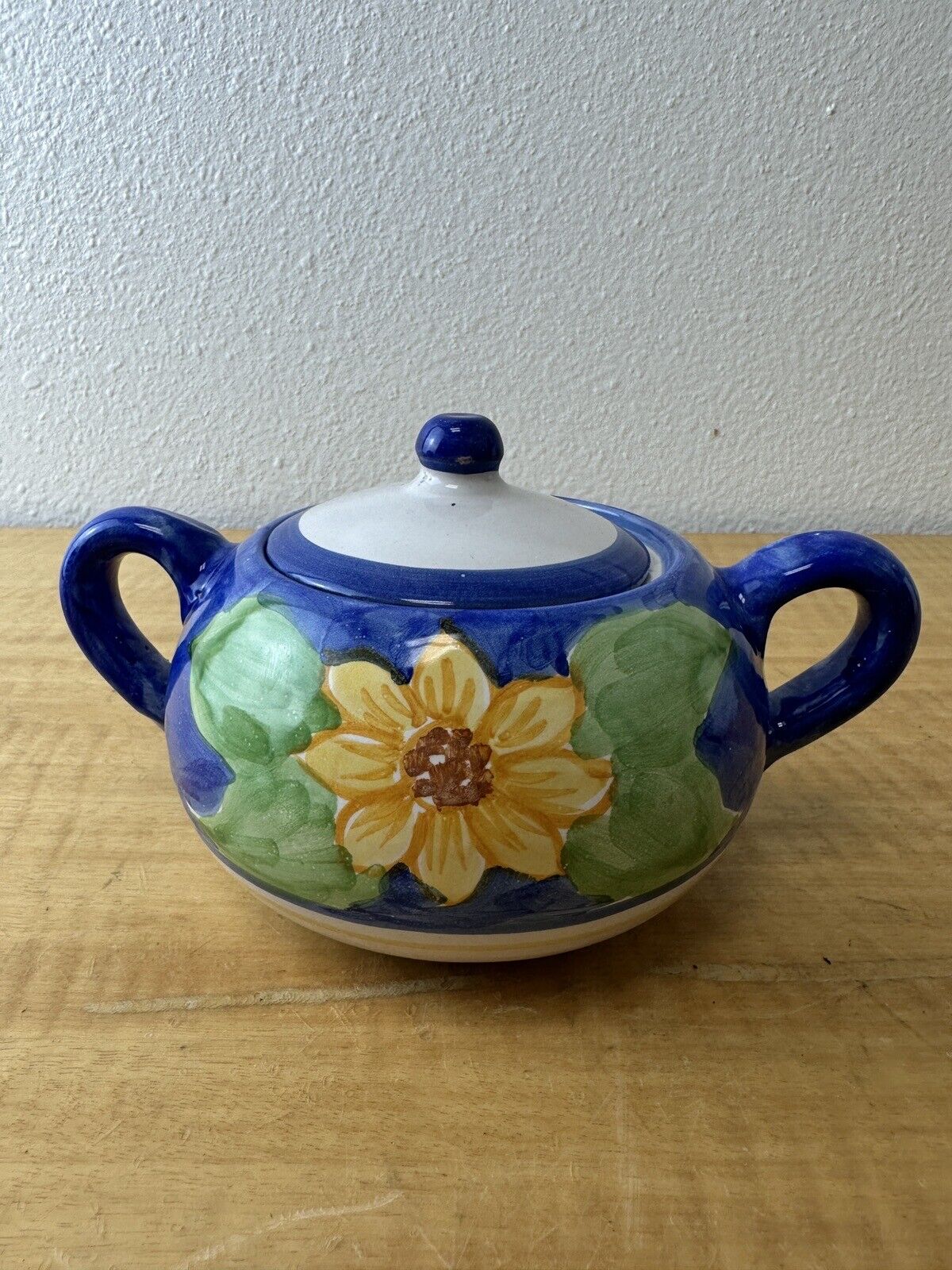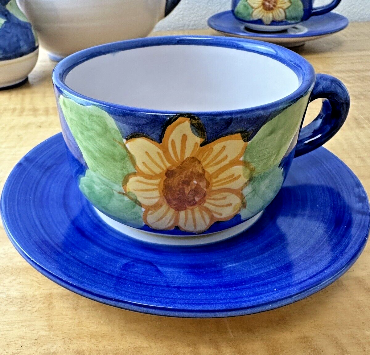 Vintage Campagna Vietri Solimene Blue Sunflower Tea Set