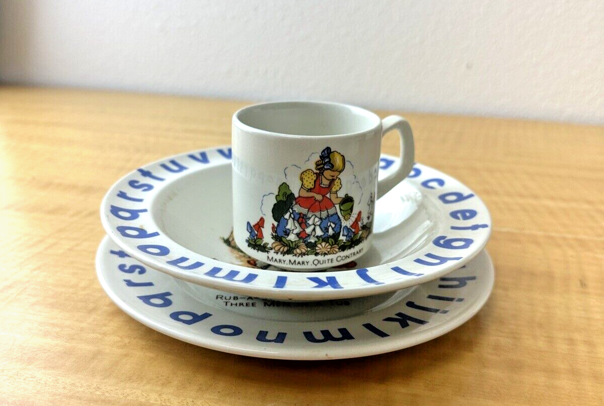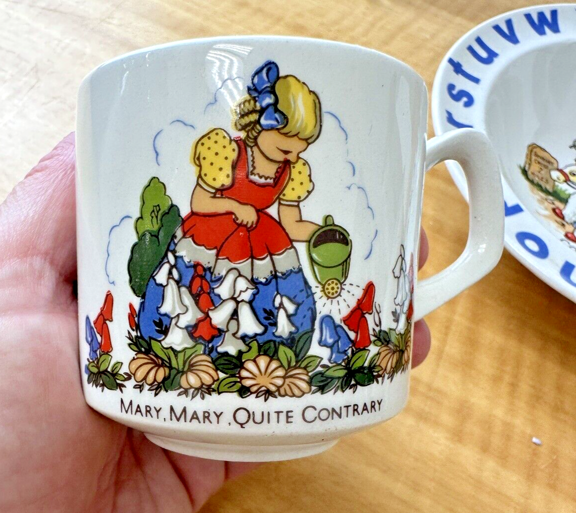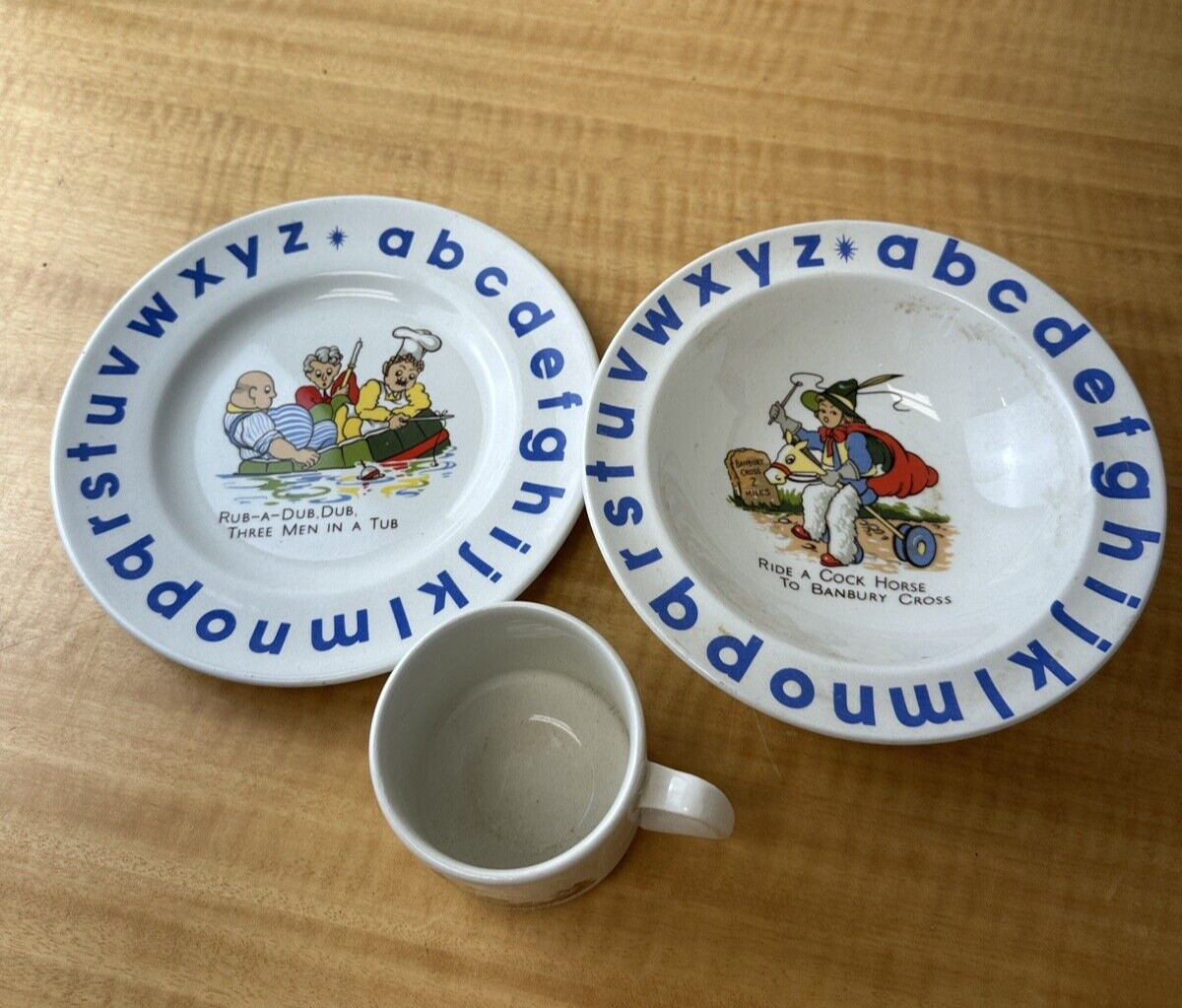 Vintage ELPCO China Child Baby Plate, Bowl & Cup, Alphabet Nursery Rhyme