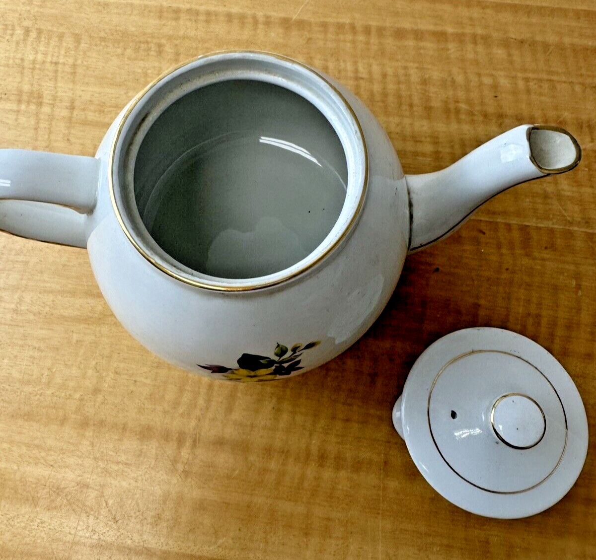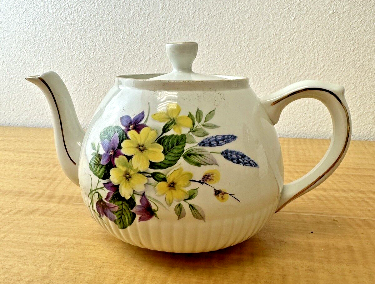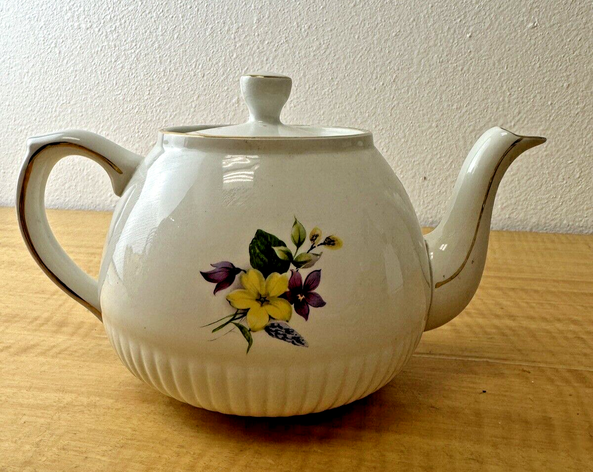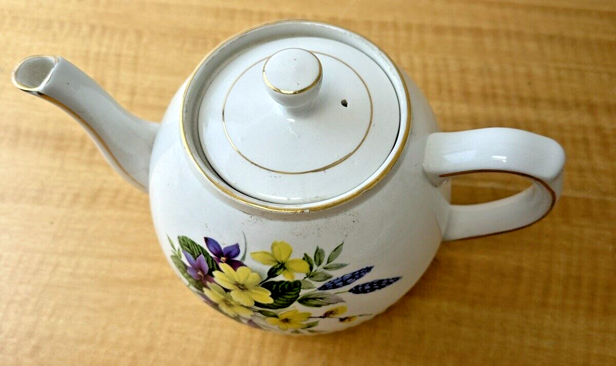 Teapot - Wood & Sons Ellgreave Ironstone - White Purple Yellow Blue - England