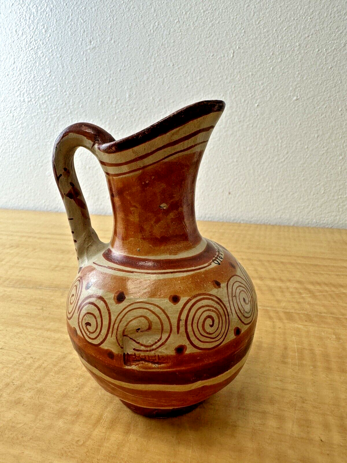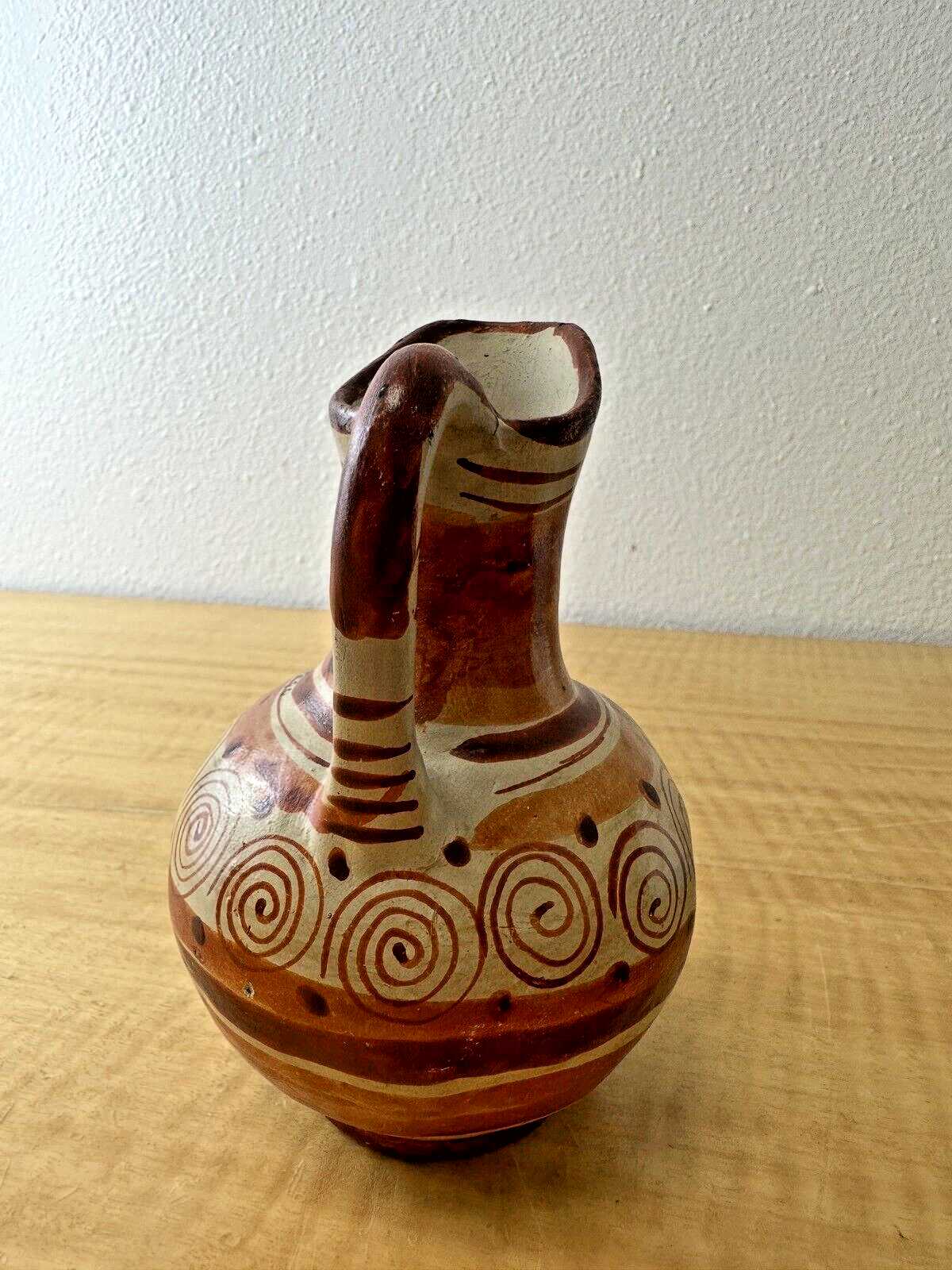 Vintage Ancient Indian Handmade Clay Vase of Brown Colors w/ Pour Spout