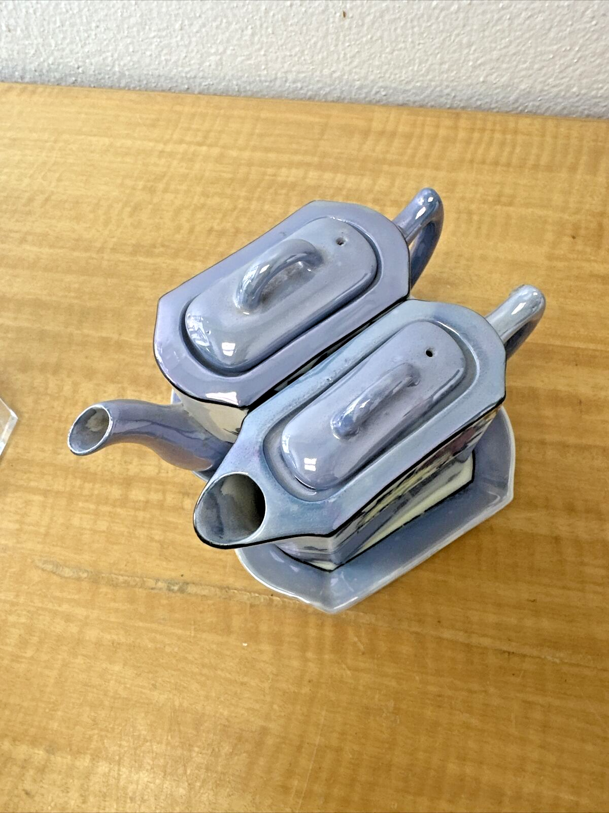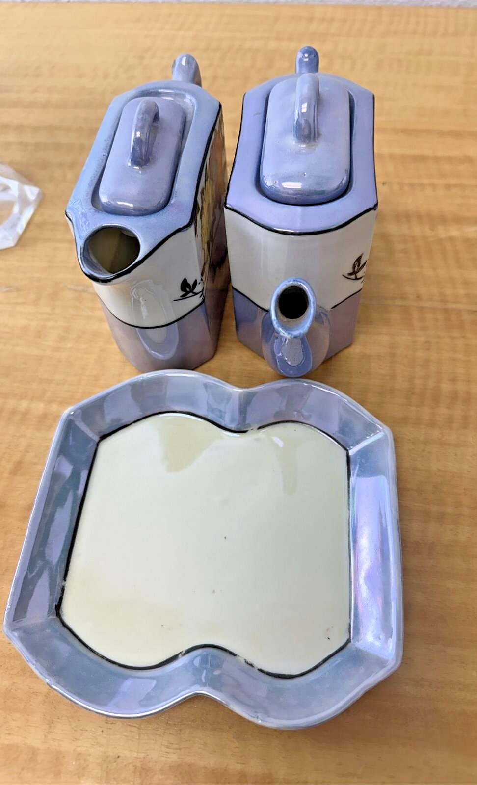 Antique Blue Lusterware Tea, Creamer Tray Made In Japan