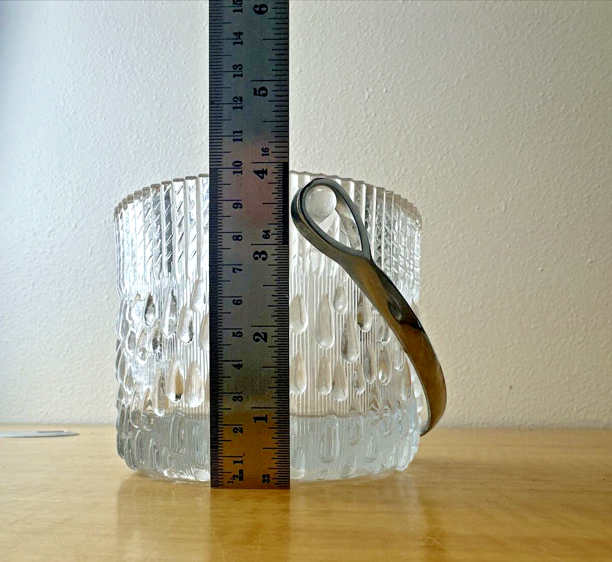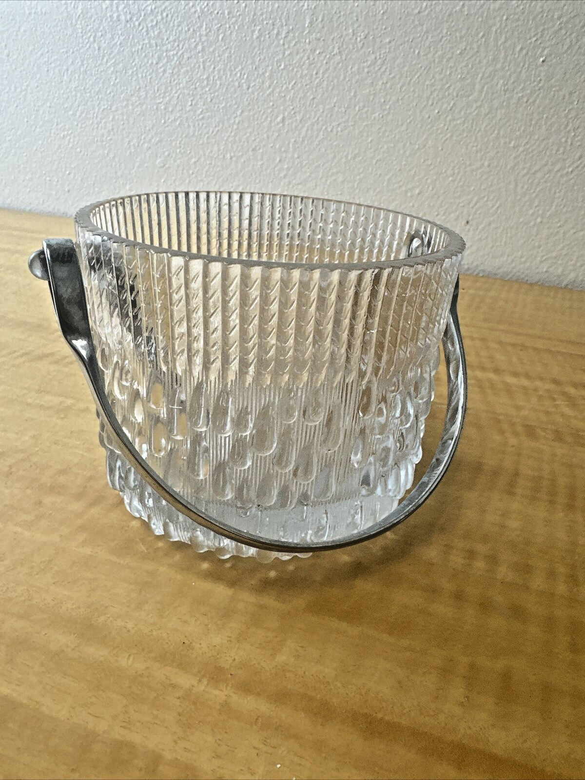VINTAGE Teleflora France Glass Ice Bucket Wine Cooler Chrome Handle Raindrops