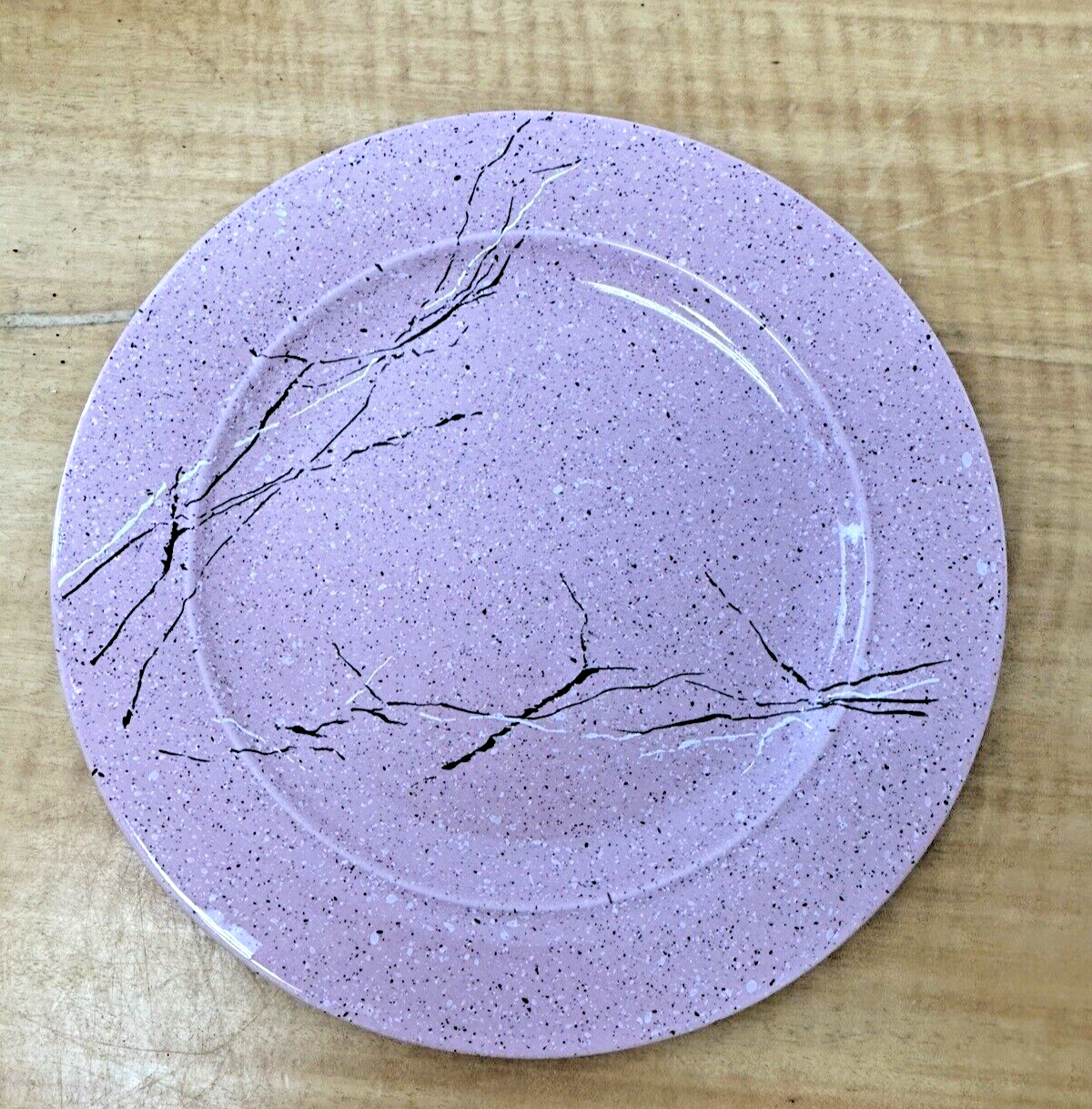 Vintage Italian Ceramic 1980s Memphis Style Pink Splatter Salad Plates - 9.5in
