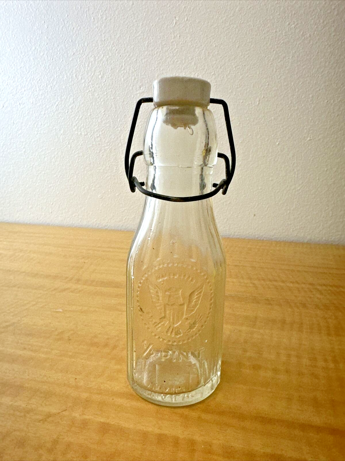 Vintage American Eagle Glass Bottle 1967 with Wire bail and Ceramic Stopper