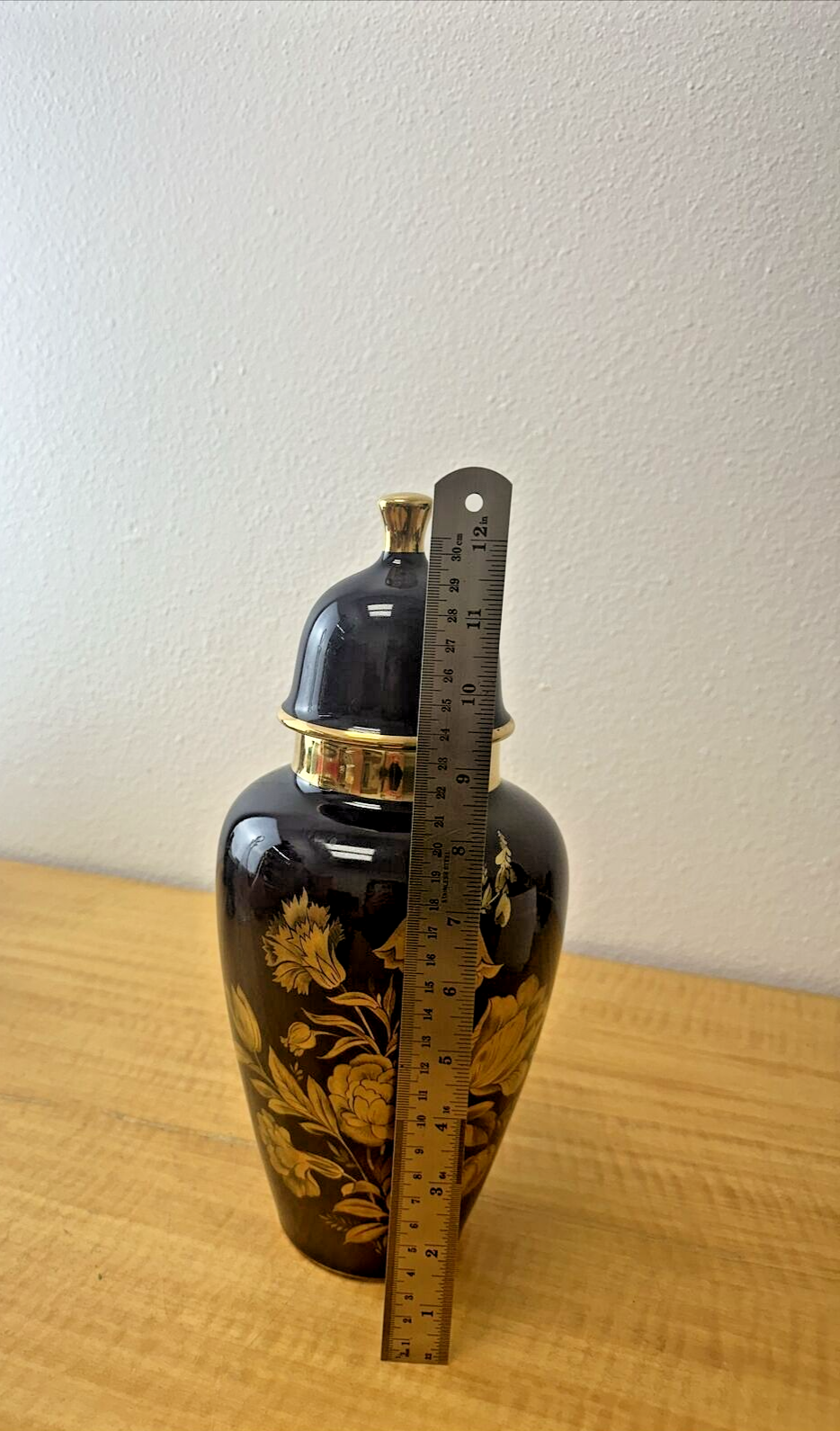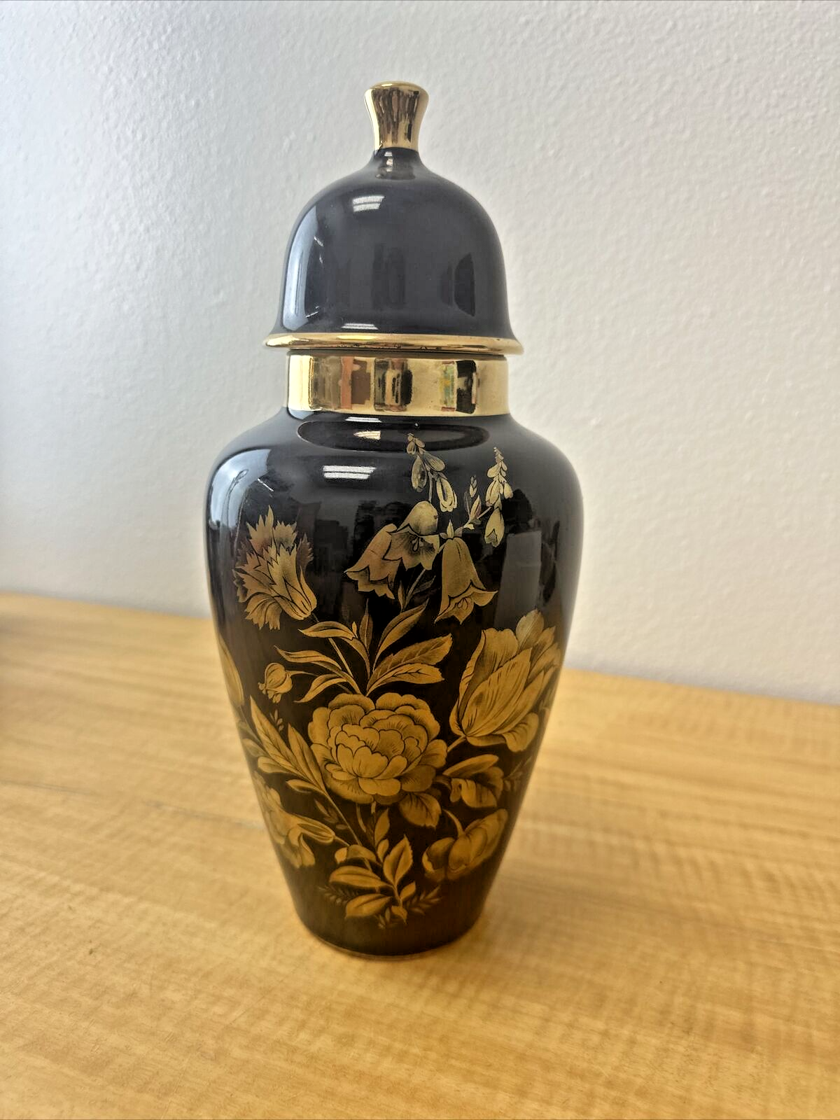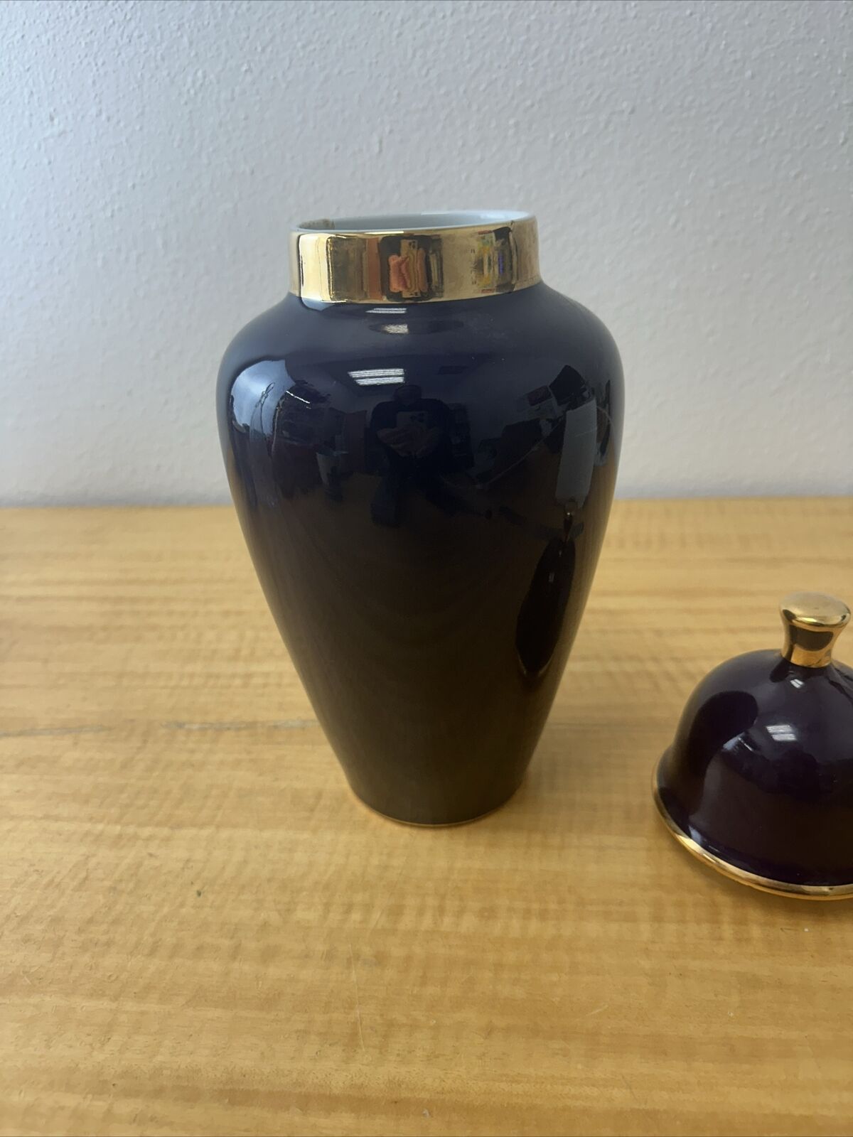 BAVARIA ECHT KOBALT BLUE/GOLD FLORAL PORCELAIN VASE W/LID/GINGER JAR 13"