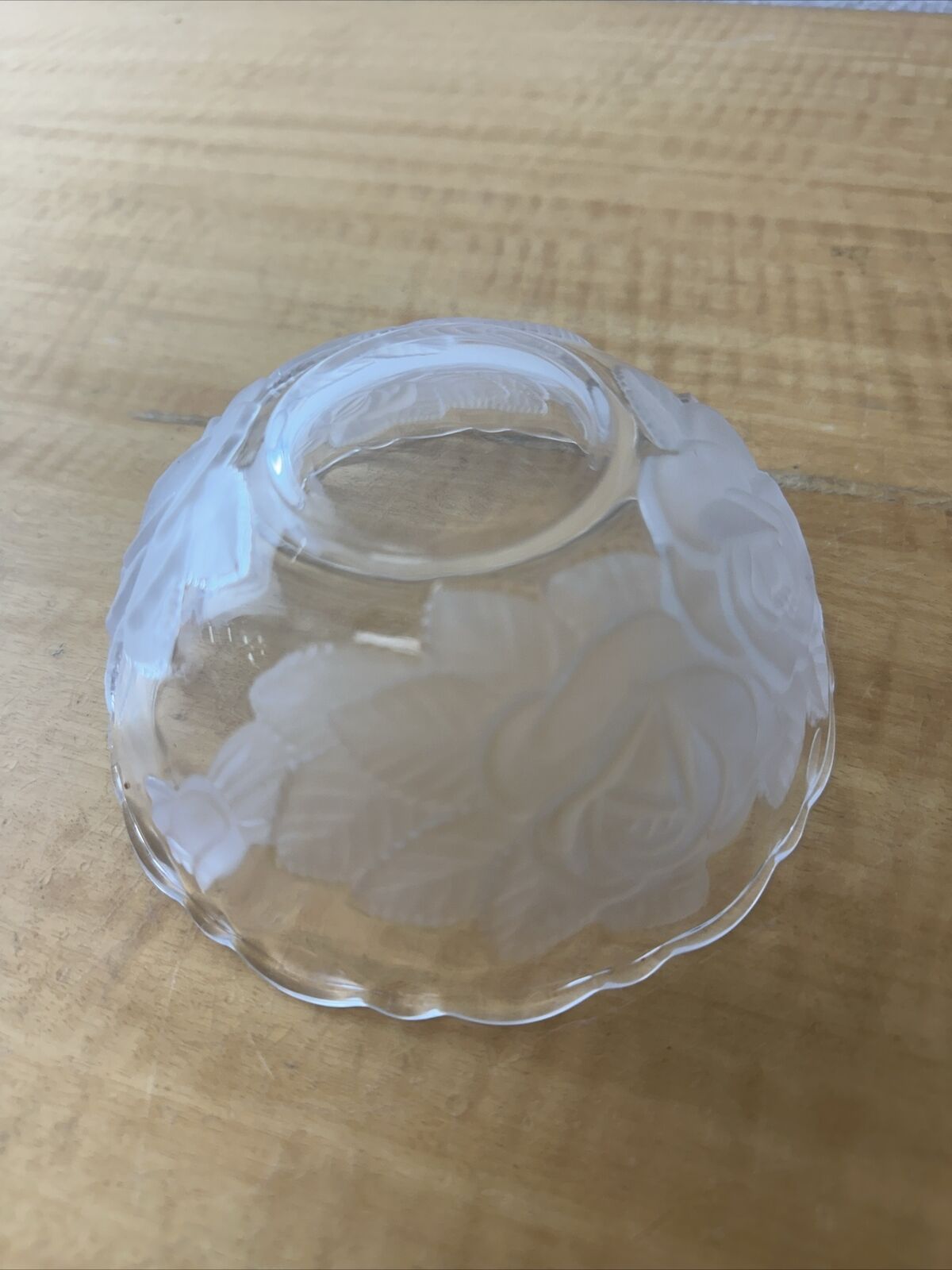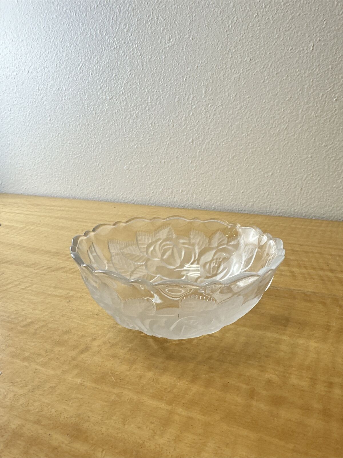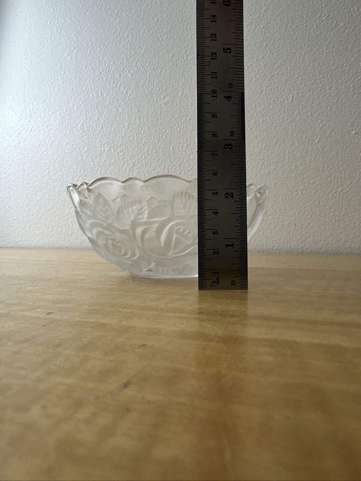 Studio Nova Serving Bowl Crystal Japan Clear Frosted Floral Clamshell Rim