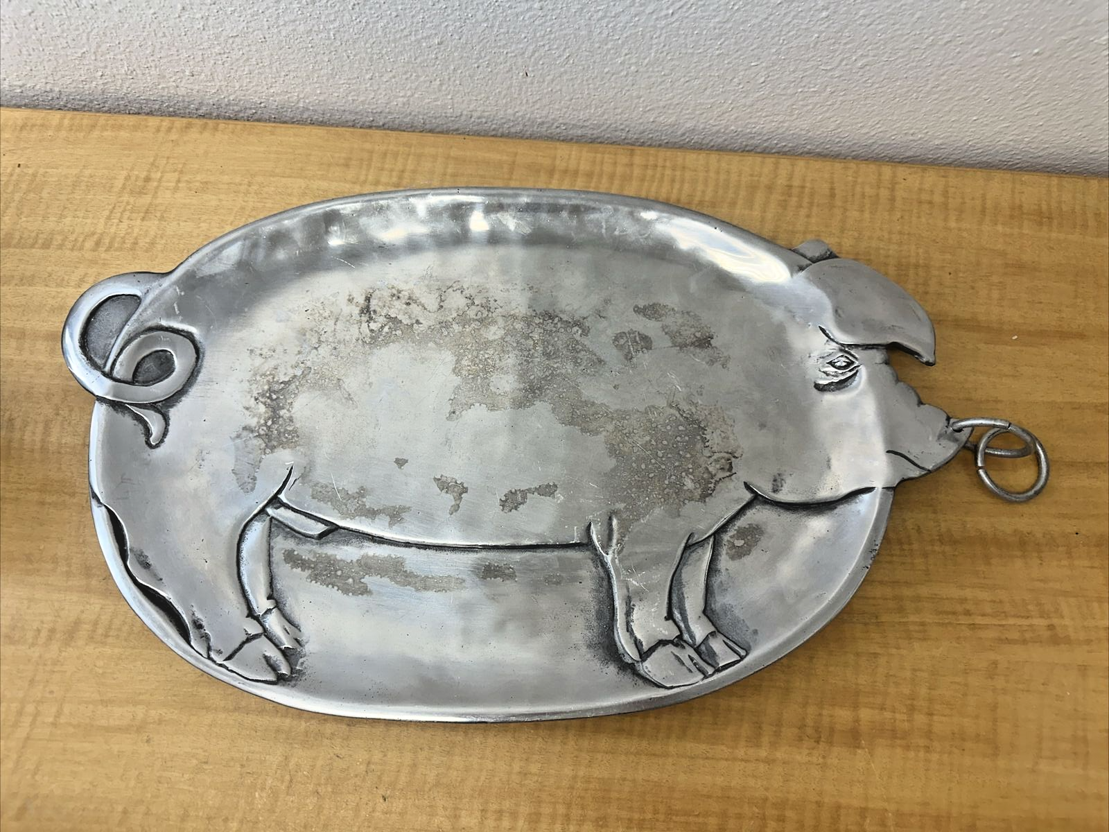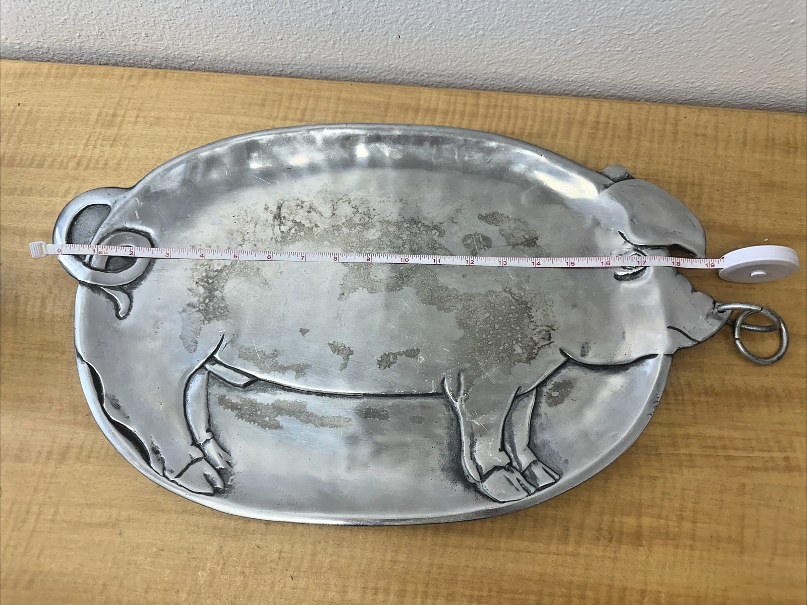 Vintage Pewter Pig Tray Platter Cast Craft, Columbia, Pa, ~ 1970s ~18" Long