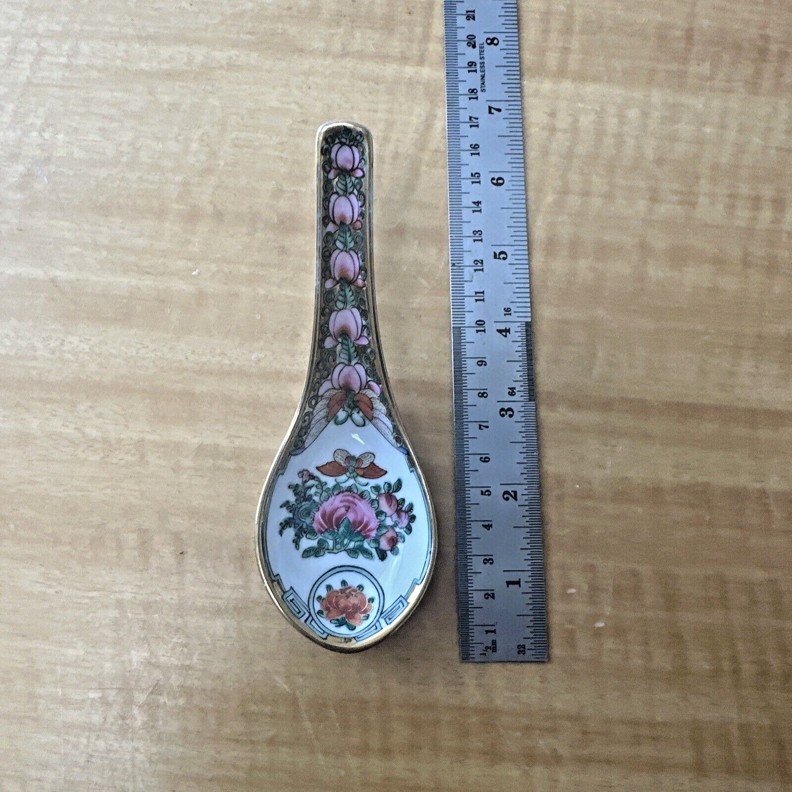 Antique Asian Porcelain Rice & Soup Spoon Hand Painted in Hong Kong Florals