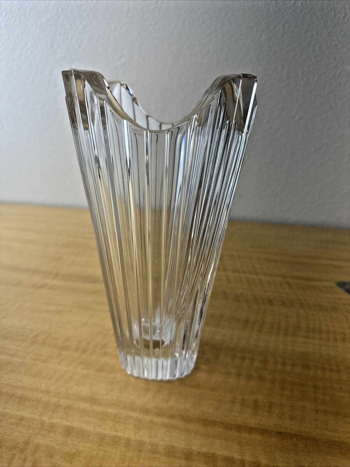 Signed Orrefors Sweden 8.5" Heavy Crystal Cut Glass Vase 4969-22