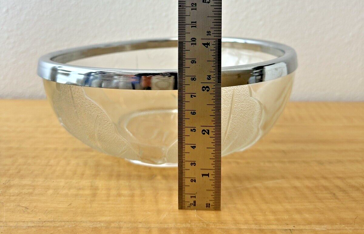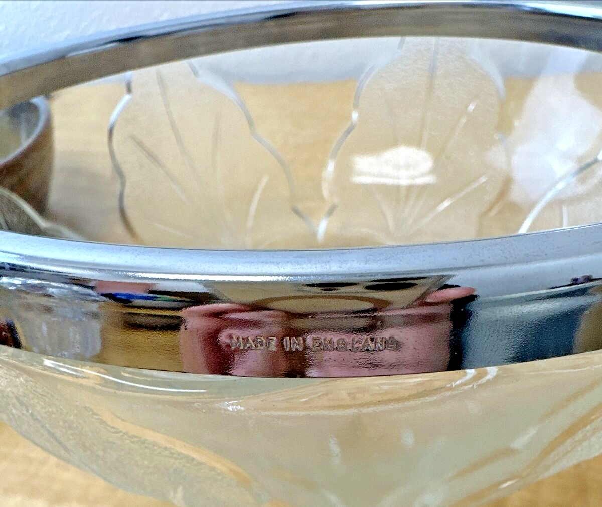 Vintage Frosted Glass Crystal Bowl with Metal Rim - Silverplate England