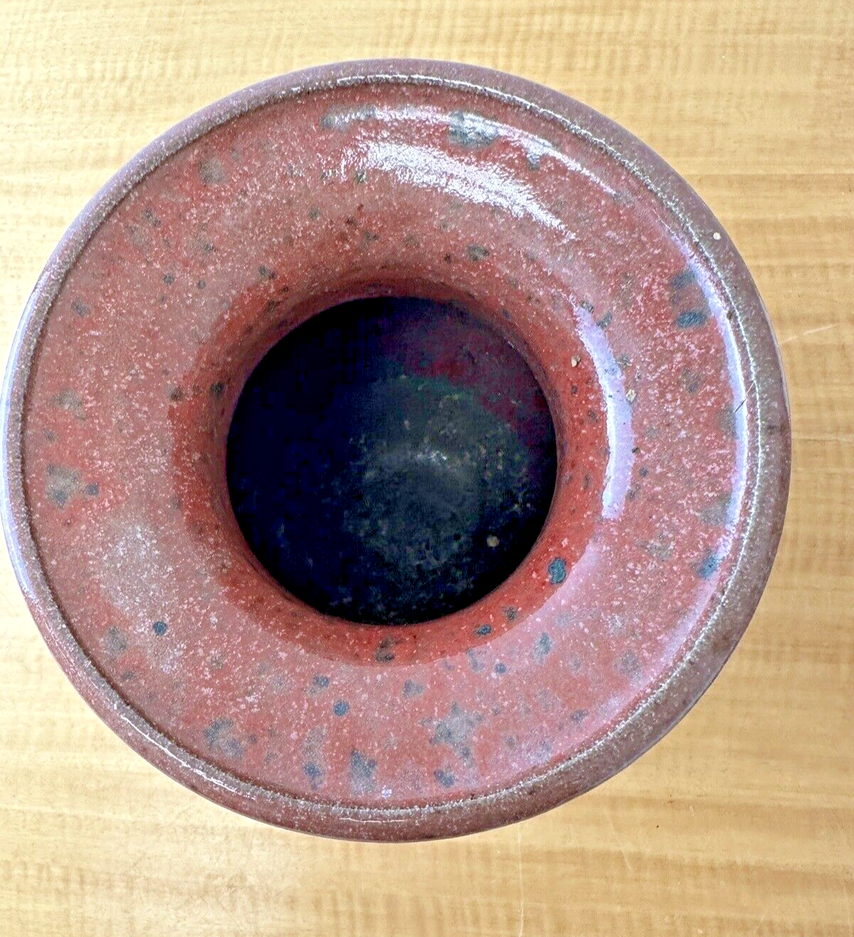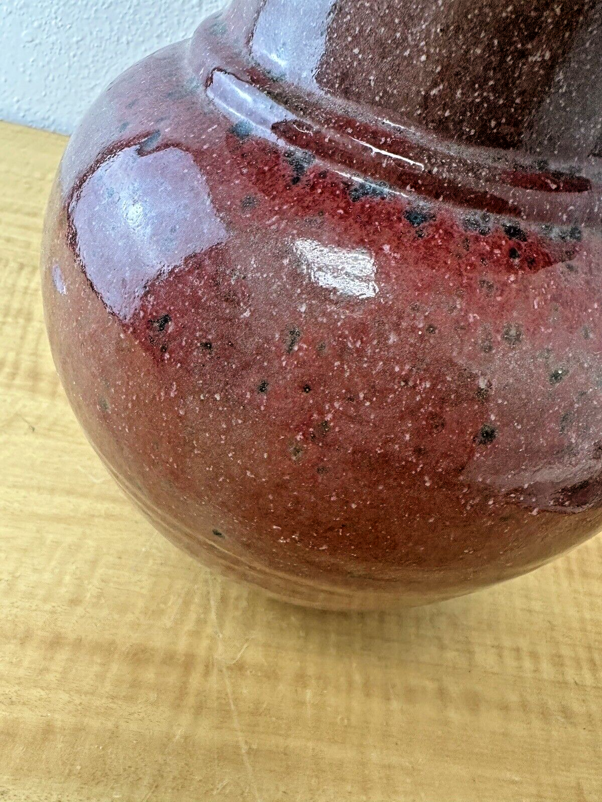 Kirk Aiken Pottery Vase Artist Signed 1975 Vintage CA Studio Art - Deep Red