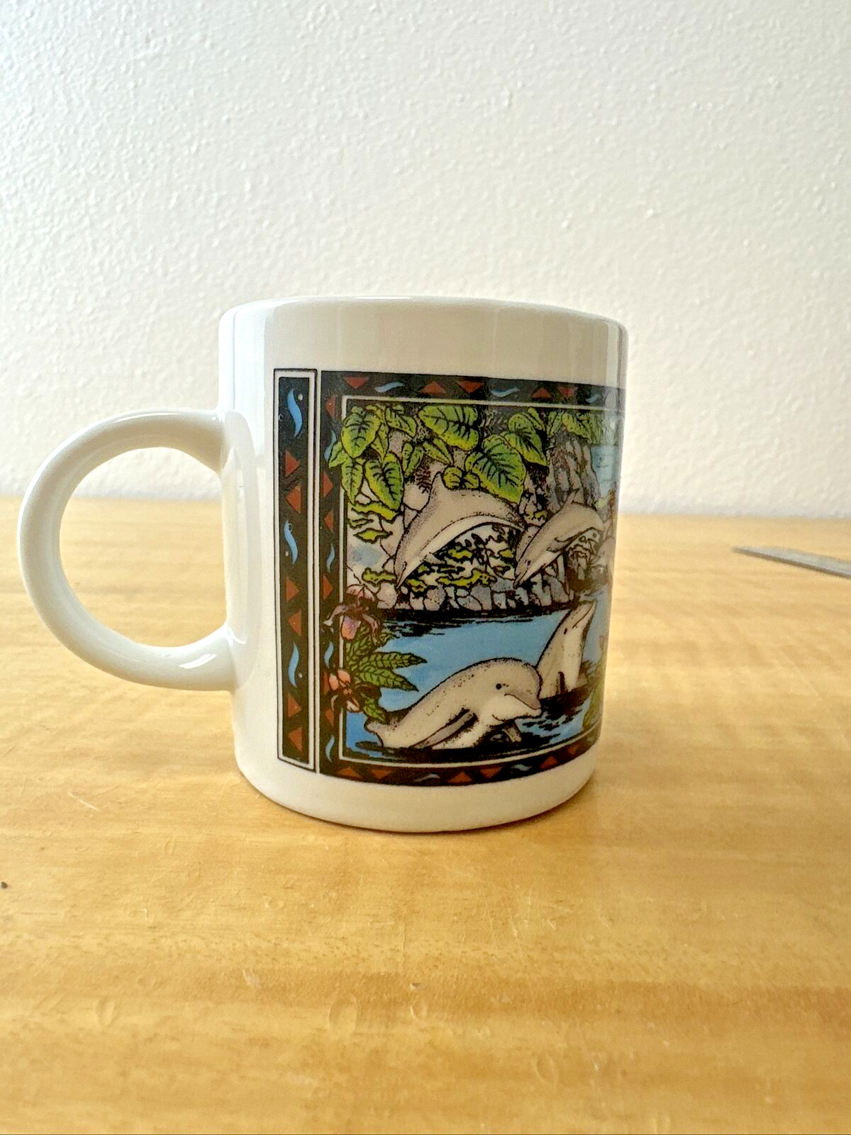 Mini Mug Ceramic Sea World Dolphins, & Black Whale