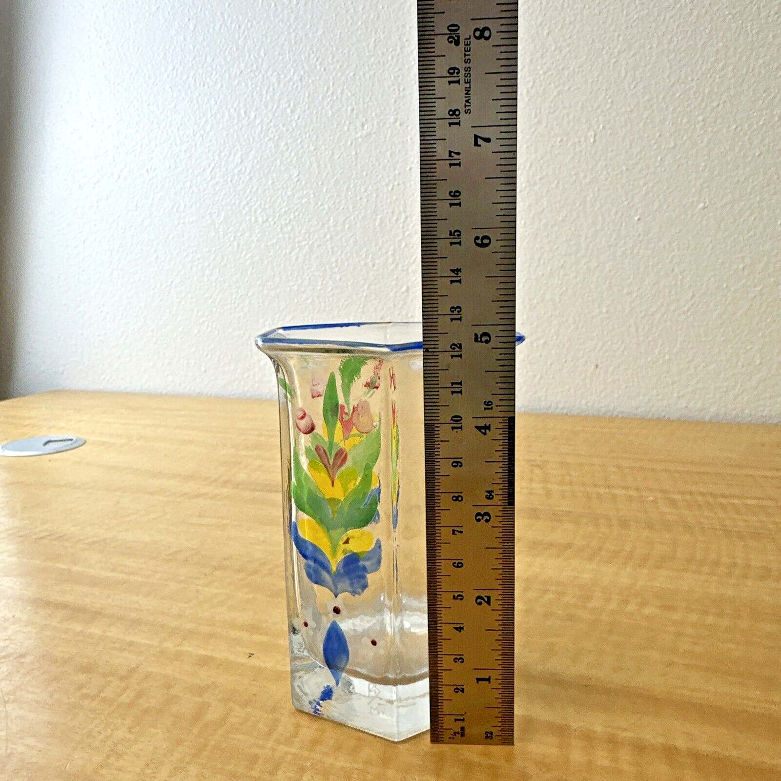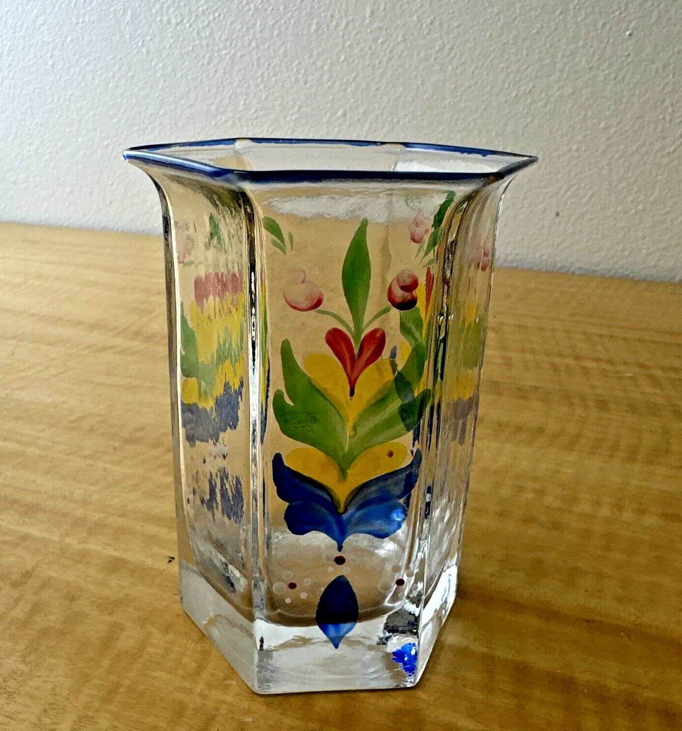 SEA Glasbruk of Sweden Hexagon Hand- Painted Flowers Vase 5"x3 Signed