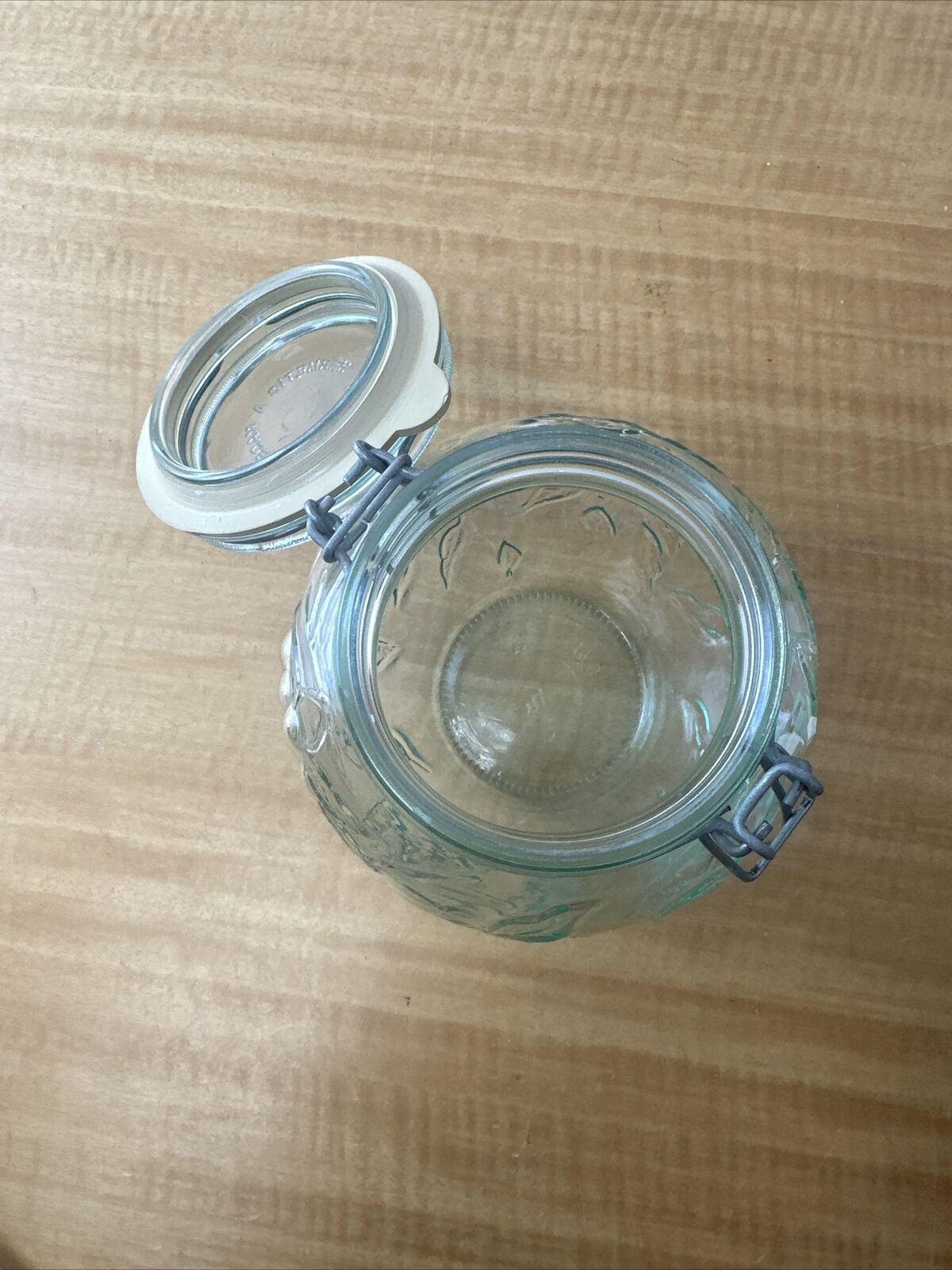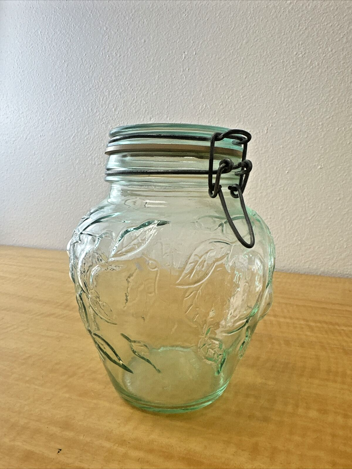 Vintage Italian SVE Green Glass Jar Made in Italy